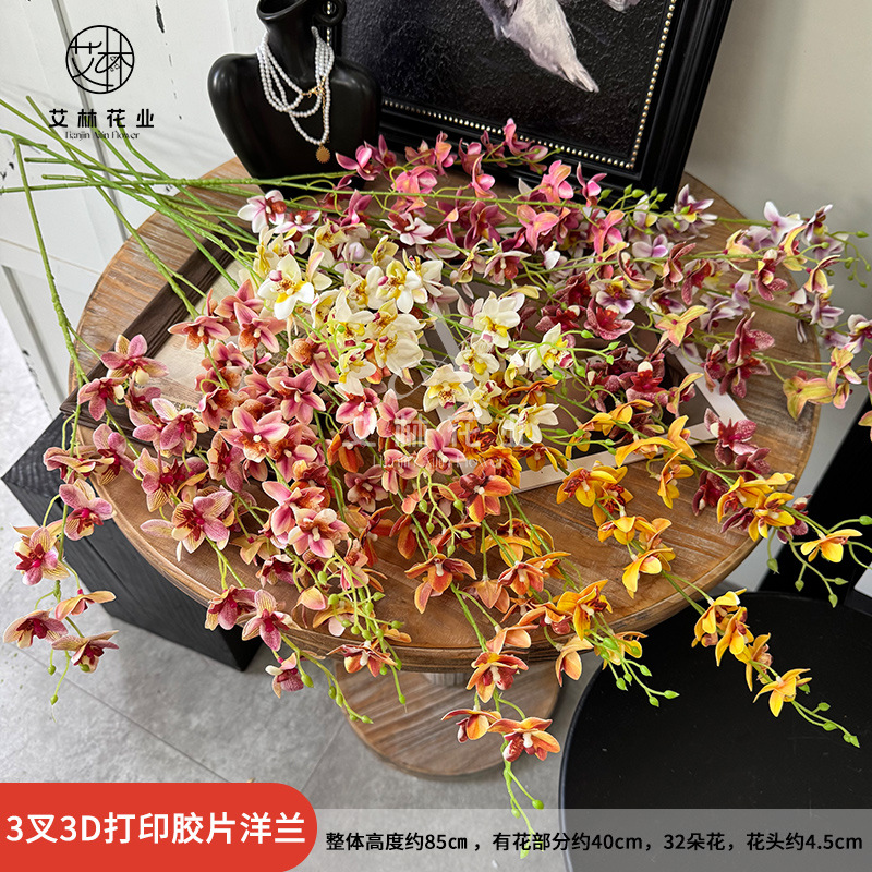3叉3dプリントフィルム洋蘭単枝結婚祝い天井家庭生け花配材装飾花メーカー卸売り造花