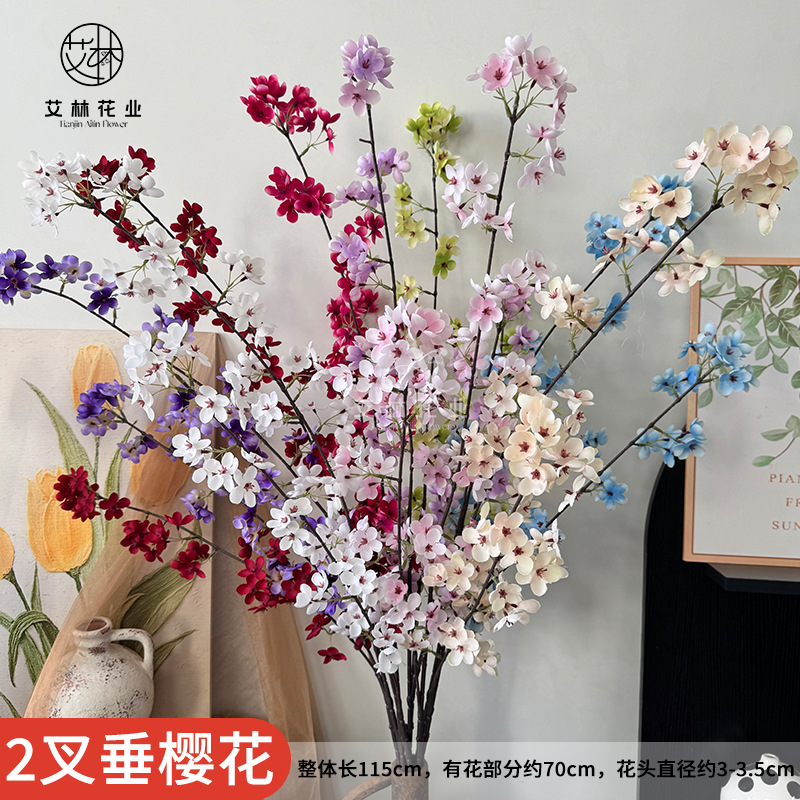 2叉長枝ベゴニア花芸布景偽花置物ホテルフロント装飾人工偽花結婚祝い装飾花