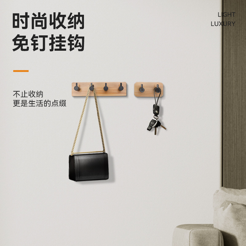 クリエイティブ浴室キッチンドア後穴なし衣類タオルフック竹木l型フック更衣室フック卸売り