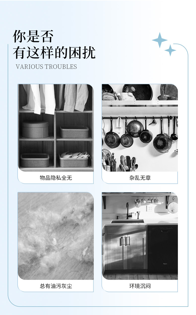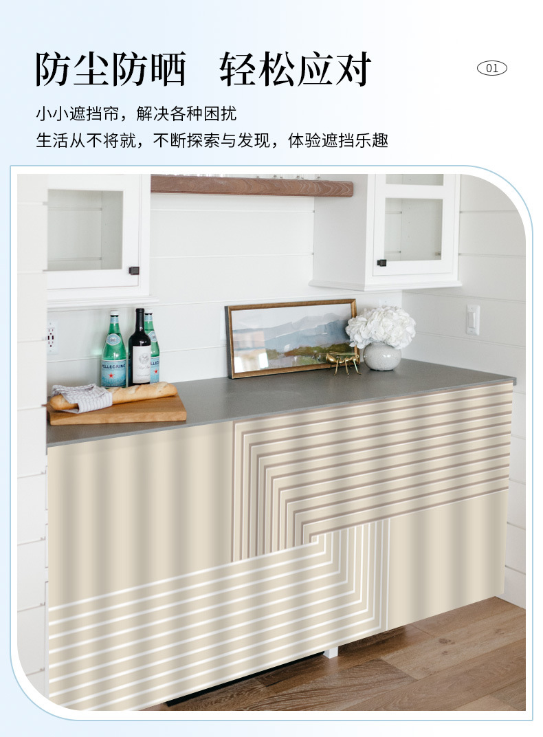 戸棚は雑物のカーテンのマジックを隠して台所の戸棚のカーテンを貼って防塵して醜いたんすのフードの間を移動するカーテンを隠します。
