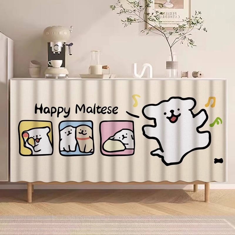 漫画の線の子犬のドアのないキャビネットカーテン、キャビネット、食器棚、ゴミをカバーするダストカーテン、パンチングなしのスライドレールカーテン