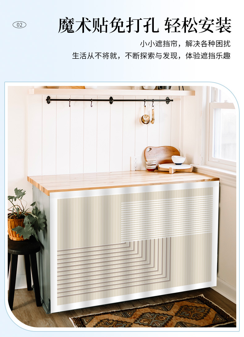 2024新商品の戸棚はカーテンのマジックを隠して戸棚を貼って醜い布のカーテンの台所の台の戸棚の日本式の雑物の戸棚の布のカーテンを遮ります。