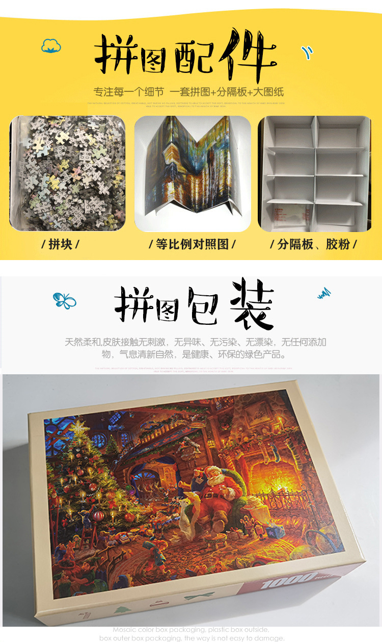 木製紙1000枚パズル減圧知育玩具クリスマス老人クリスマス新卸売りメーカー直供