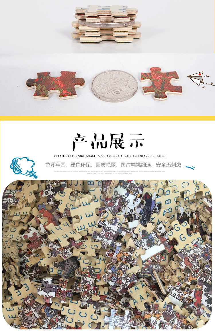 木製パズル1000ピース大人パズル減圧子供漫画アニメ風景名画パターン平面パズル
