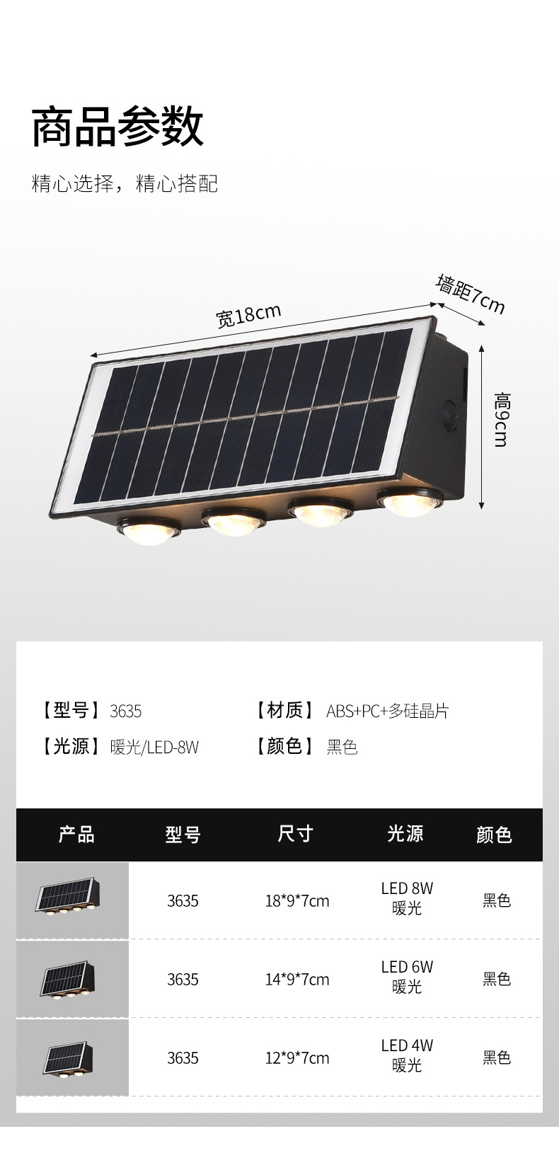 パワー 3635四頭タイプ-18cm-暖光8w,3635三頭タイプ-14cm-暖光6w,3635双頭タイプ-12cm-暖光4w