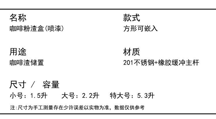 メーカー直供小容量ステンレス粉滓桶コーヒー打滓槽コーヒー器具粉滓箱廃滓桶粉槽