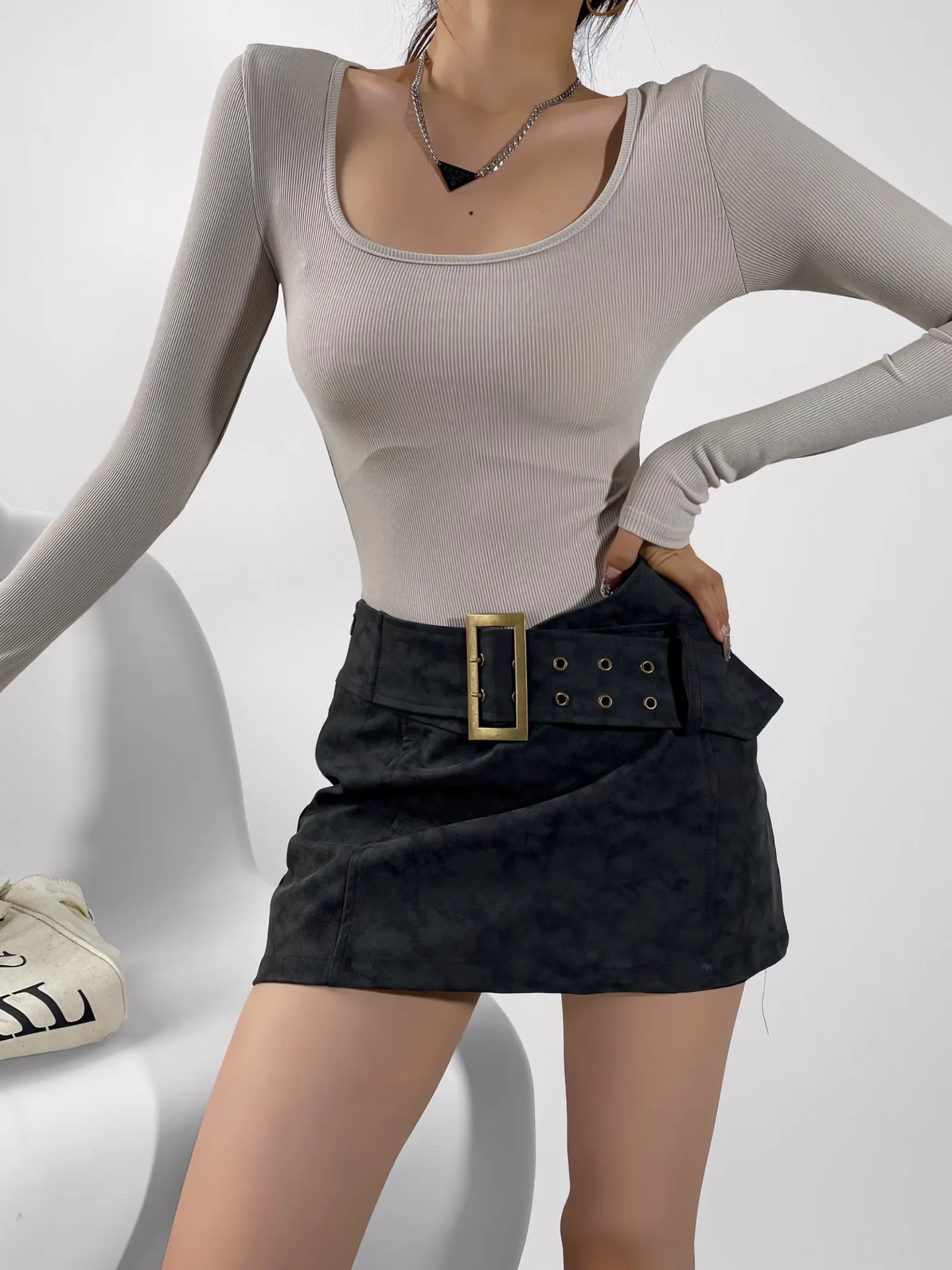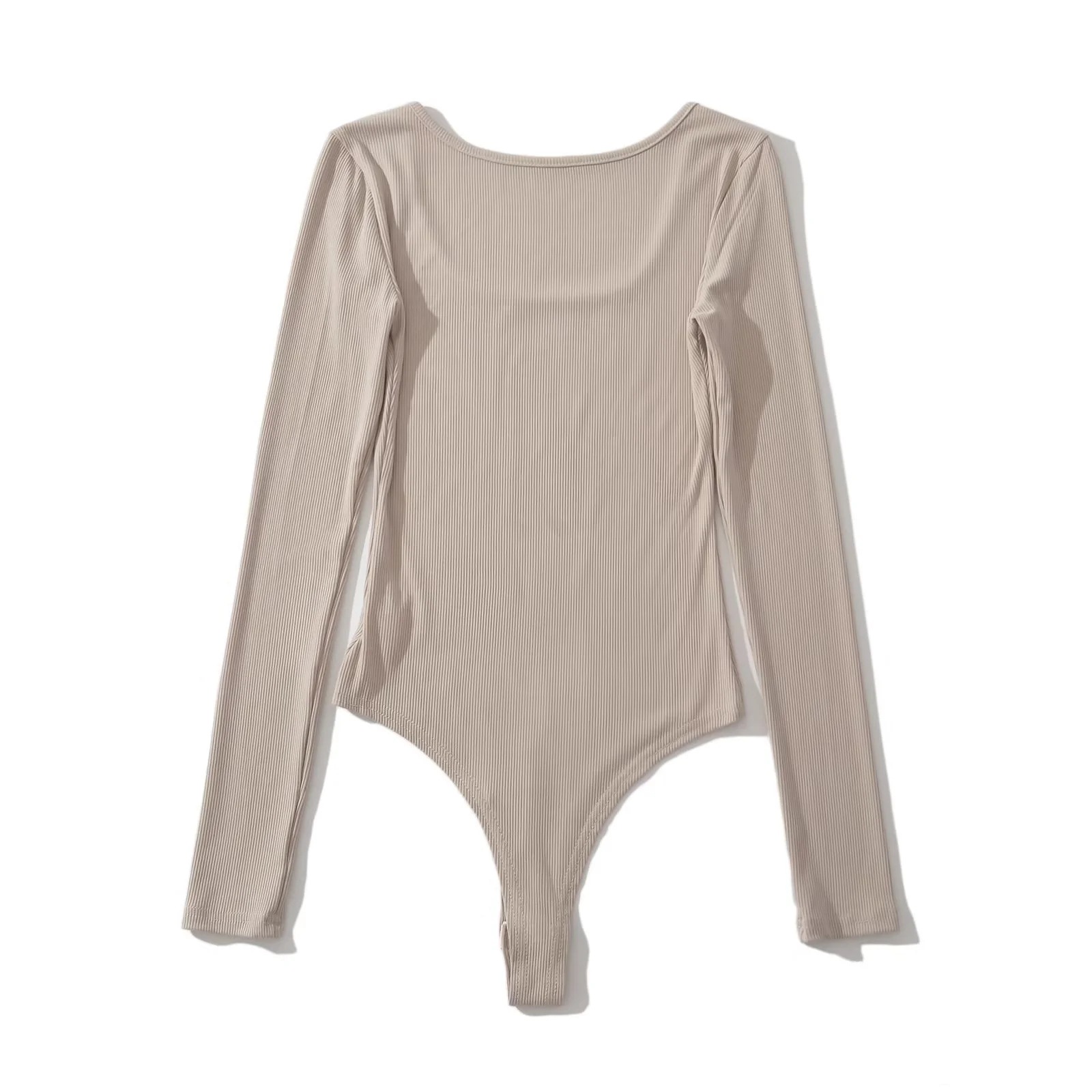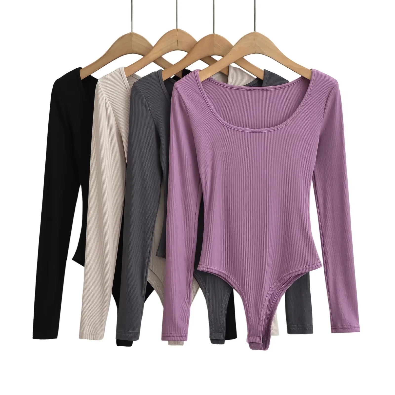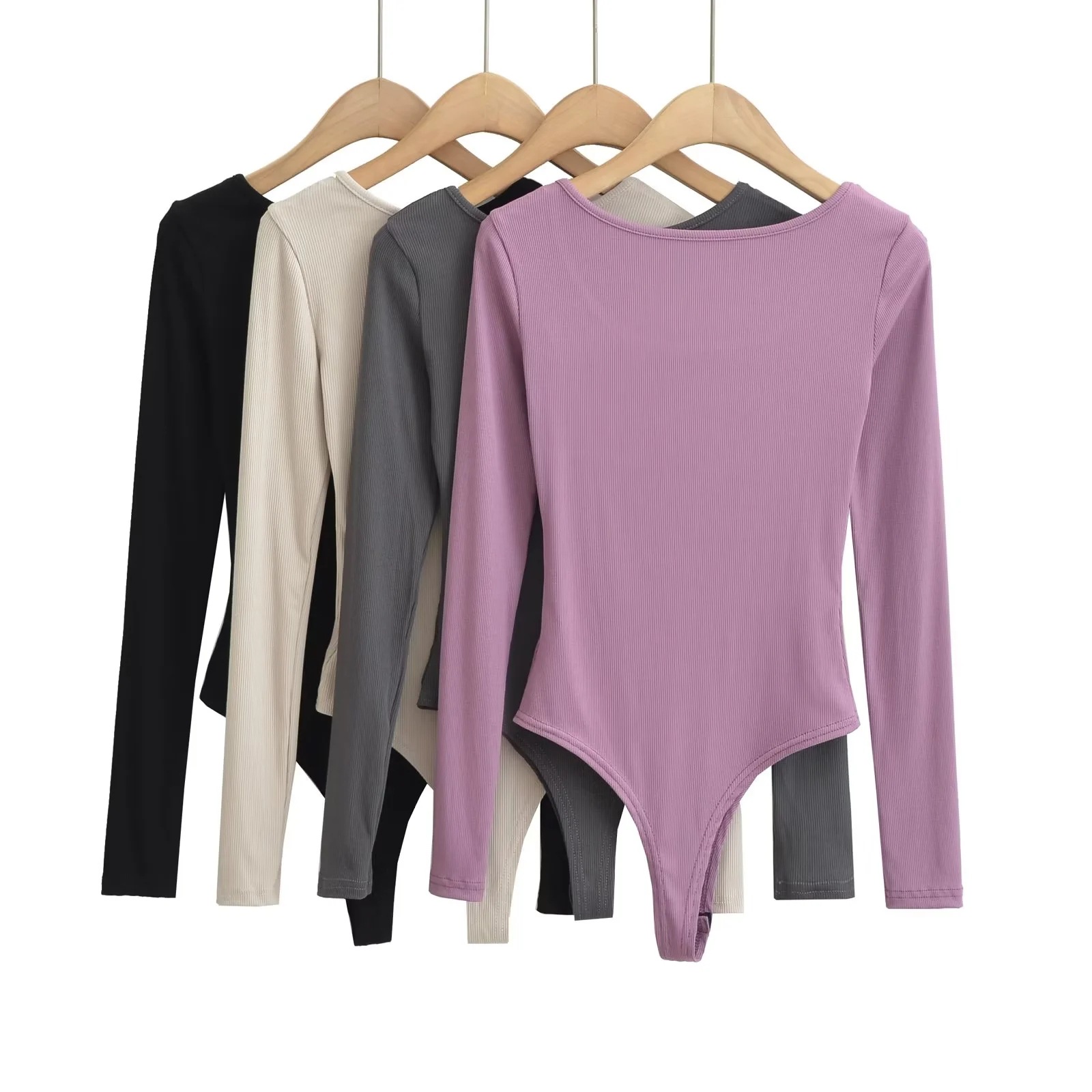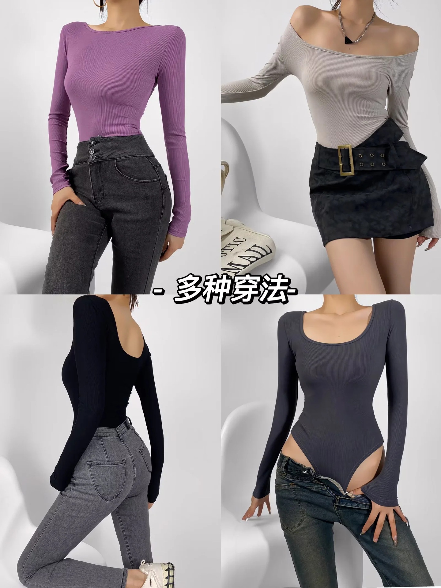 欧米のins丸首長袖網糸透明連体服夏の新型弾力修身透視セクシーt