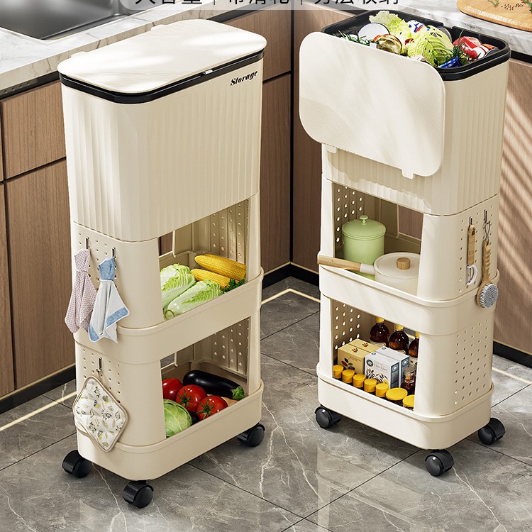 キッチンゴミ箱家庭用大容量スライドカバー移動可能二重高さタイプ腰をかがめない専用日本式物置棚