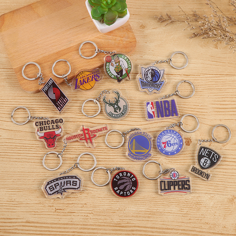 Nbaのバスケットボールチームのマークのアクリルのキーホルダーのキーホルダーのペンダントのスターの同項の公式の周辺