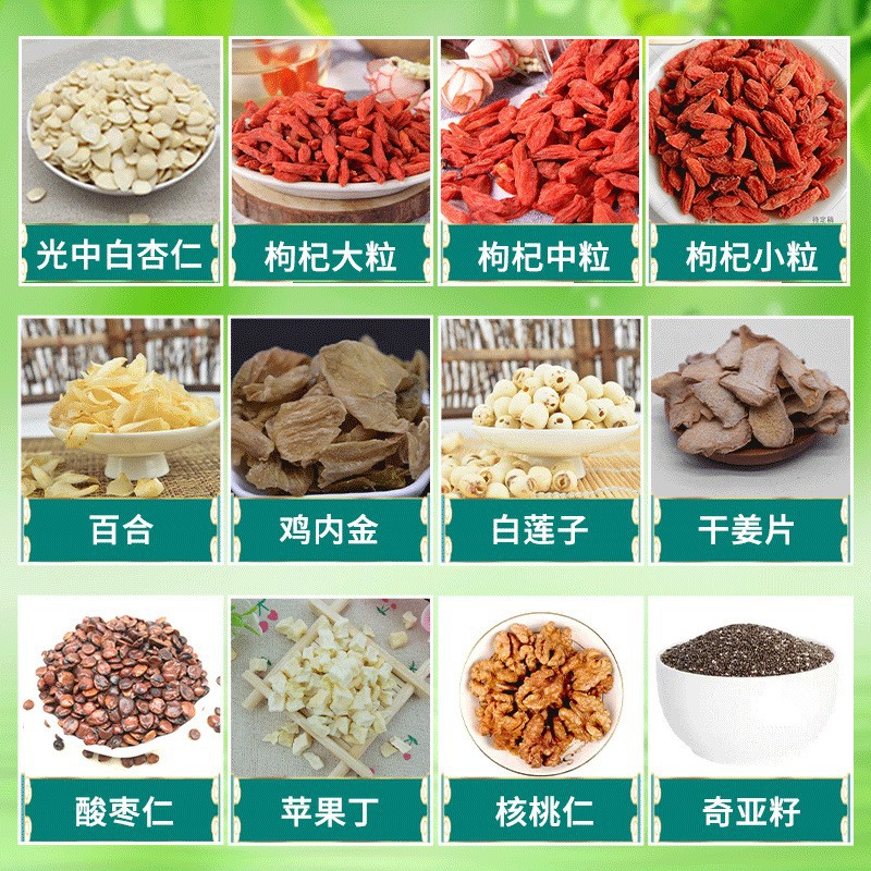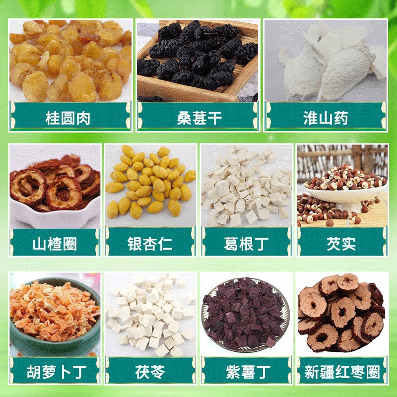 梱包仕様 調理済みゴルゴン果実 0.5kg,ポリア・ポリア 0.5kg,完熟白蓮の実 0.5kg,熟した淮山芋 0.5kg,葛根煮0.5kg,調理済みドライユリ0.5kg,調理済み新疆ナツメ リング 0.5kg,中寧クコ (中粒) 0.5kg,中寧クコ(小粒)0.5kg,熟したくるみ粒(頭路) 0.5kg,調理済みくるみ粒(三路) 0.5kg,完熟かぼちゃ粒 0.5kg,角切りにんじん0.5kg,紫芋の角切り0.5kg,リンゴのかけら 0.5kg,乾燥生姜スライス 0.5kg,熟したイチョウの実 0.5kg,熟した乾燥桑の実 0.5kg,調理済みサンザシ リング 0.5kg,砂肝0.5kg,レンコン澱粉0.5kg,山芋小片0.5kg,完熟ホワイトアーモンド0.5kg0.5kg,黒クコ0.5kg,熟した赤い蓮の実の花びら 0.5kg,淮山ヤムイモ 0.5kg,山芋ダイスカット 0.5kg