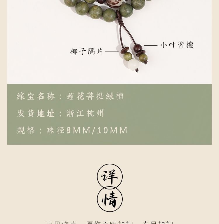 譚大工緑檀木手串蓮菩提子檀香仏珠盤は森系ブレスレット七夕プレゼント女を遊びます。