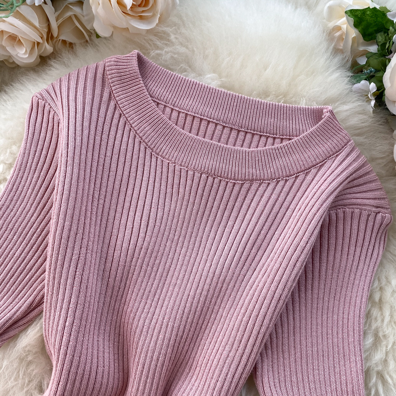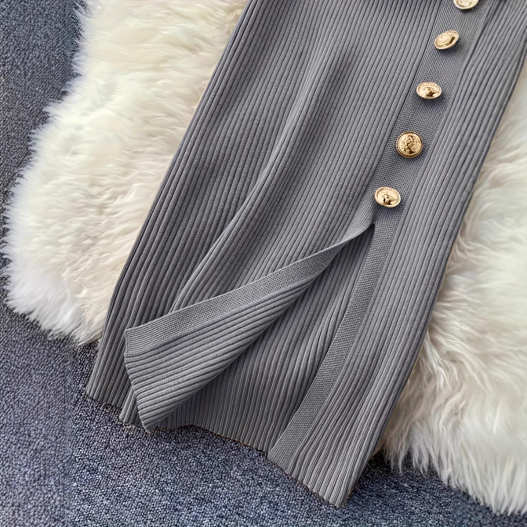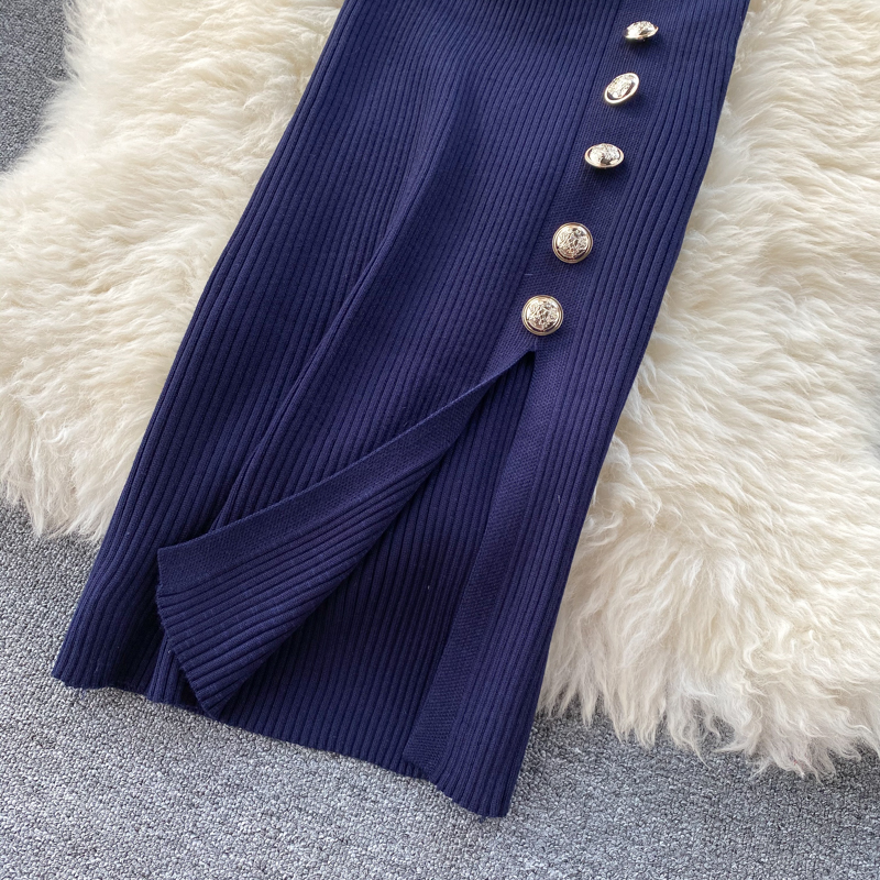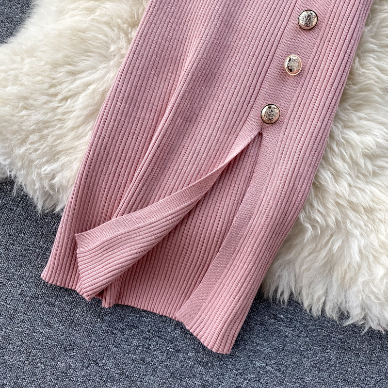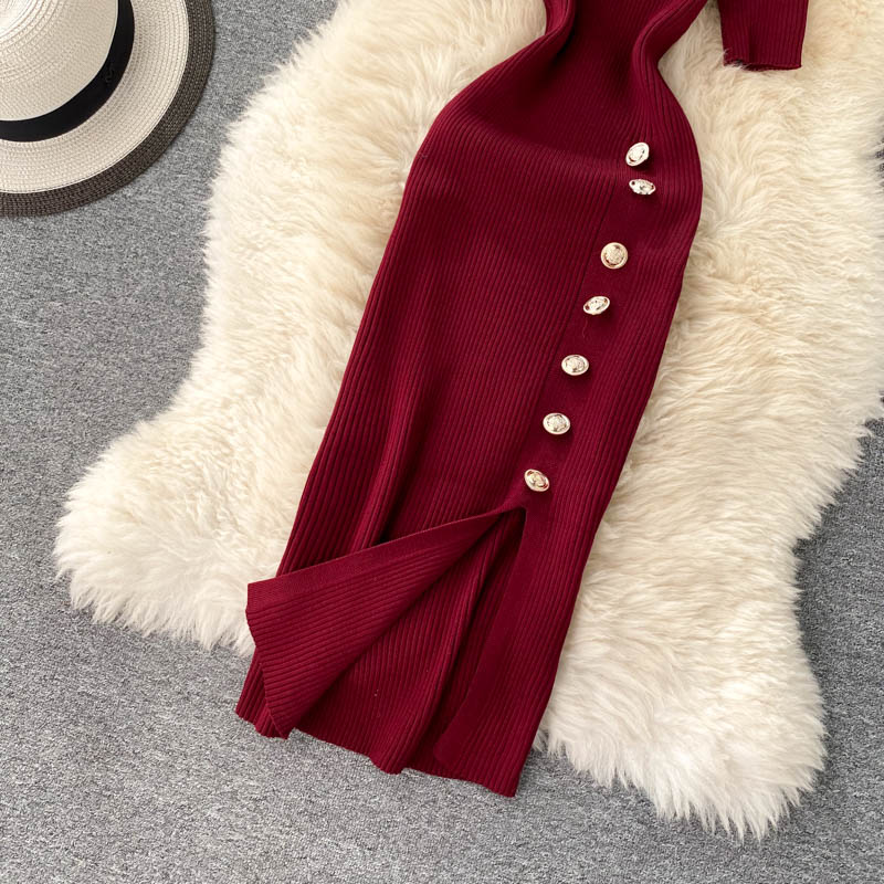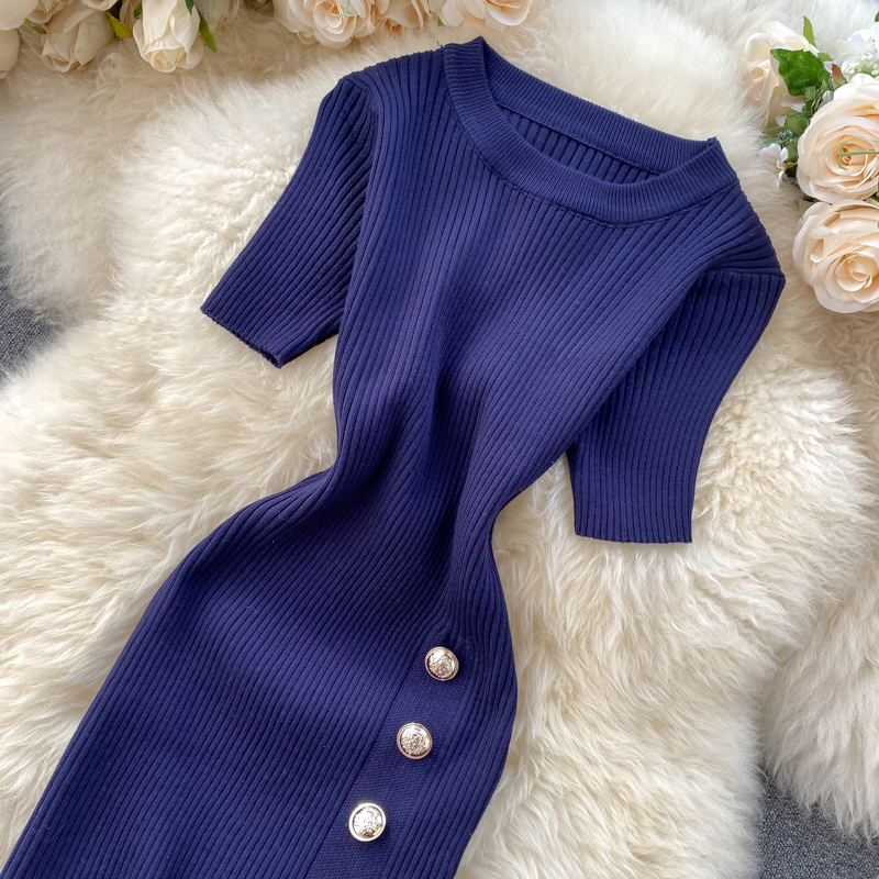 ヨーロッパとアメリカのクロスボーダー春夏ニットドレス女性のミドル丈ウエストスリットセータードレス