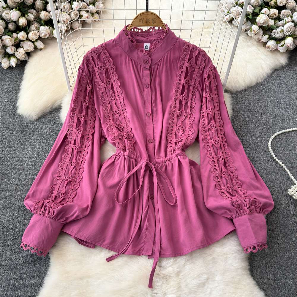法式宫廷风高级感系带收腰衬衫女镂空钩花设计感小众轻奢名媛上衣