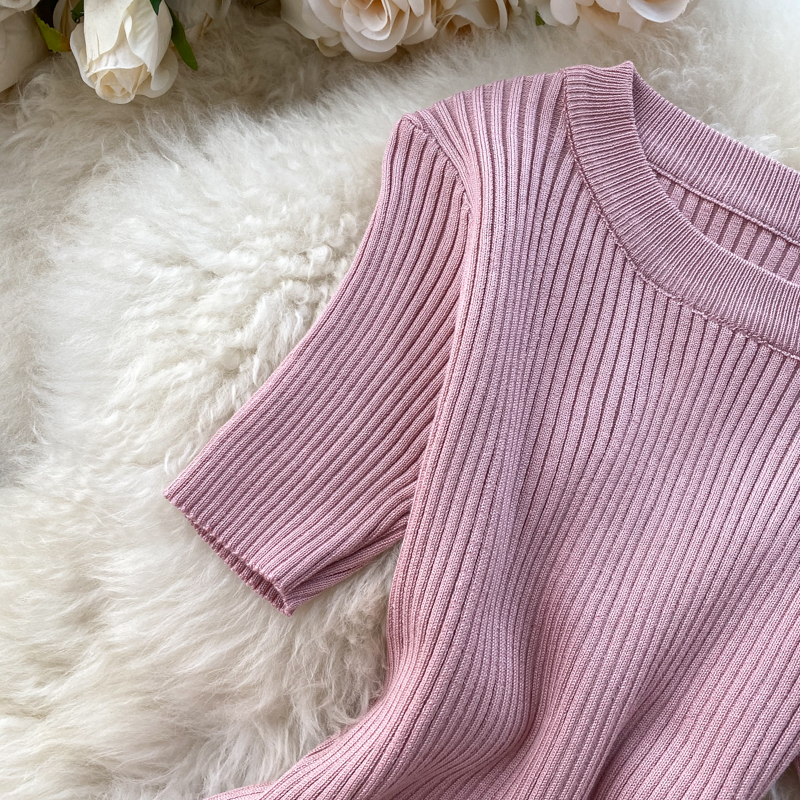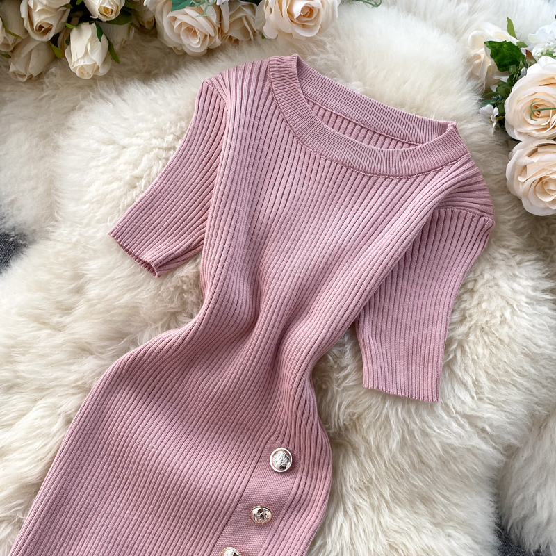2020年に流行した女装の新型韓国版シンプルな純色のボタンを合わせて半袖のニットをします。