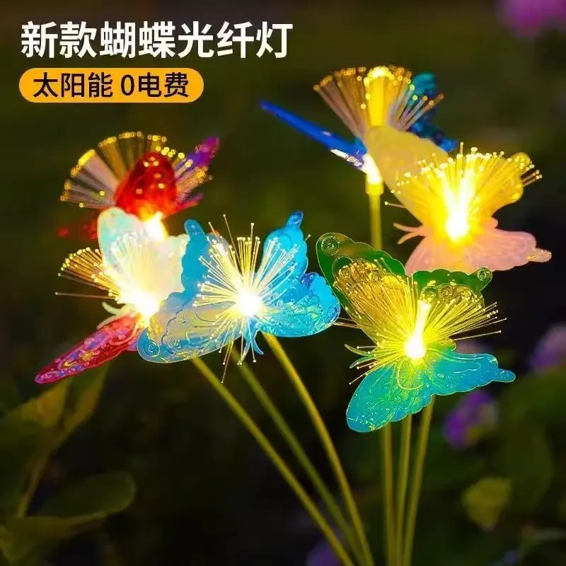 太阳能LED光纤蝴蝶花灯地插式草坪灯户外防水庭院灯氛围花园彩灯