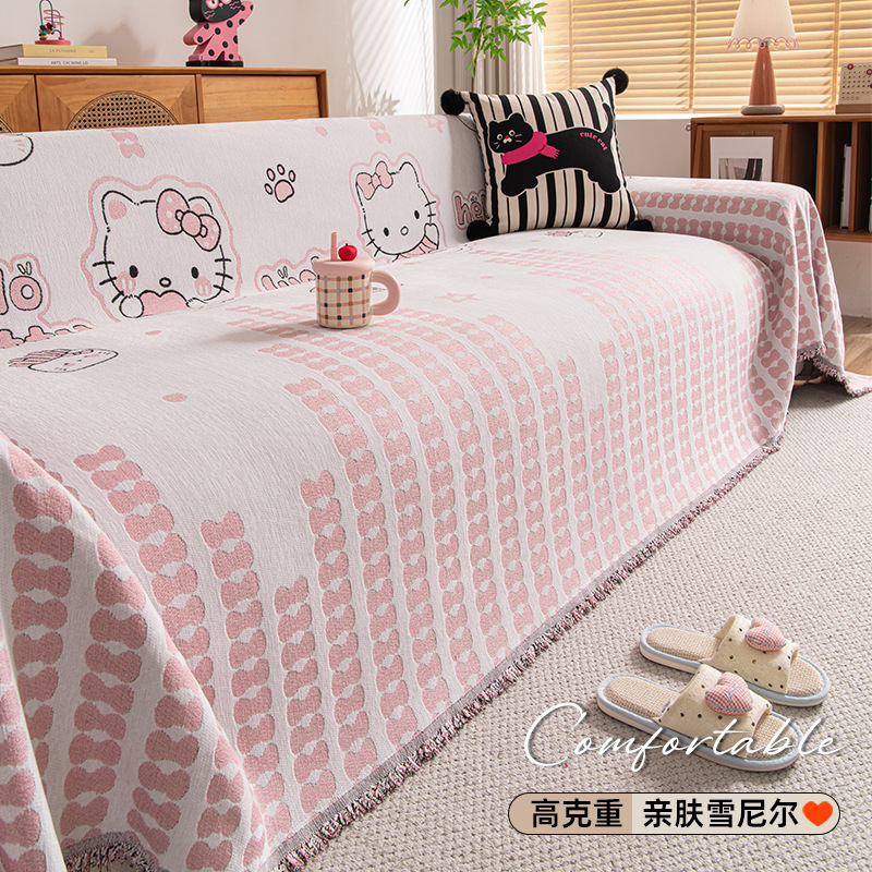 粉色卡通沙发盖布巾可爱沙发垫布防猫抓万能沙发盖毯一片式沙发巾