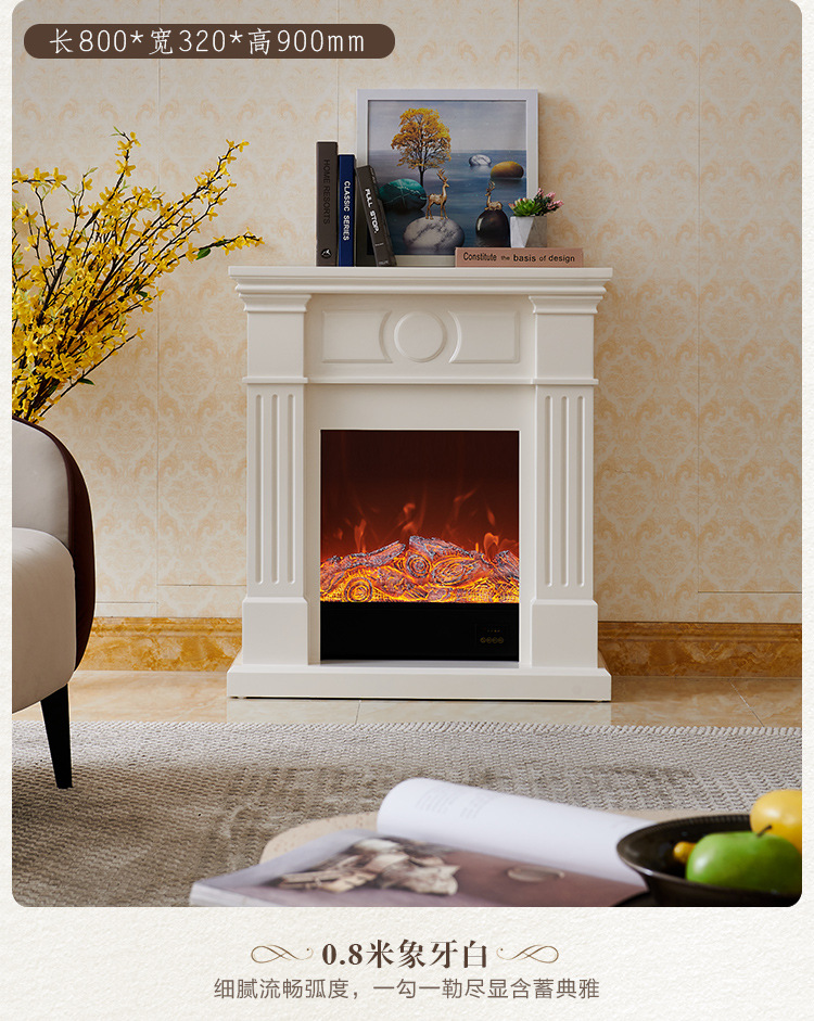1.2/1.5メートルフランス式暖炉装飾盤家庭用寝室別荘客間シミュレーション炎暖炉暖房白色