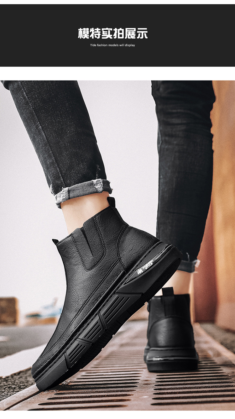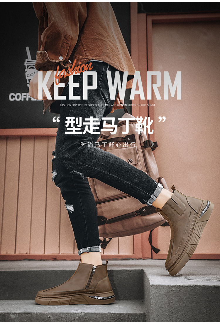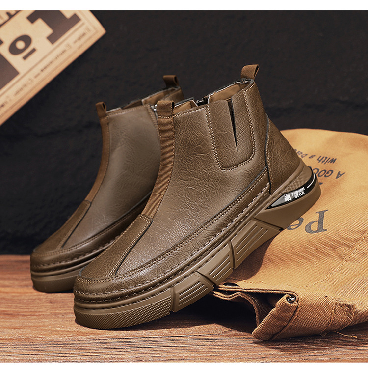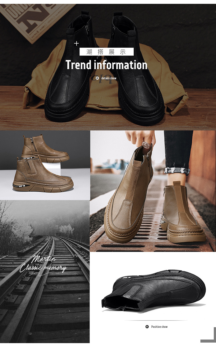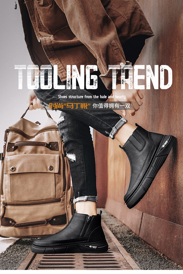 男性靴秋冬英倫高さんはカジュアルな靴の新型男性の滑り止め耐摩耗性工装靴の厚い底のマーティンブーツを手伝います。