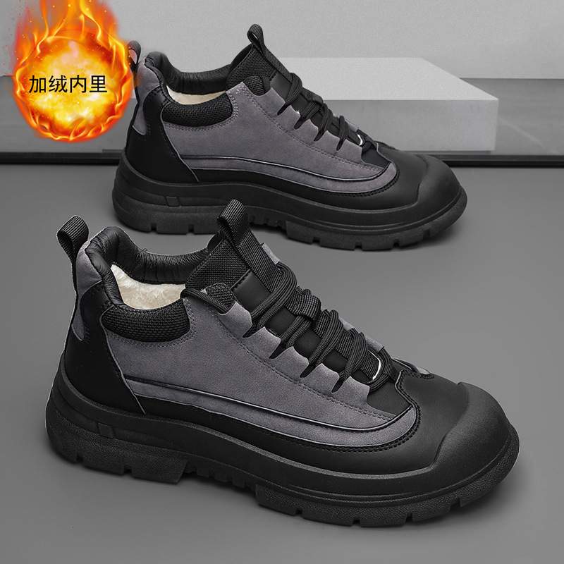 国潮男靴2023新型冬にベルベットをつけてカジュアルな板靴を厚くする男性の厚い底の運動には保温靴がついている