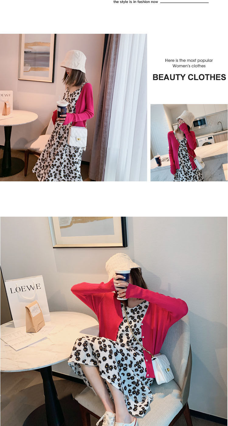 震え音天猫品質フランス小柄ニット秋冬デザイン感灯籠袖ファッション修身包尻ワンピース