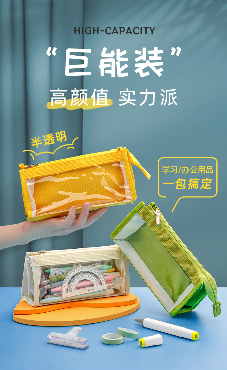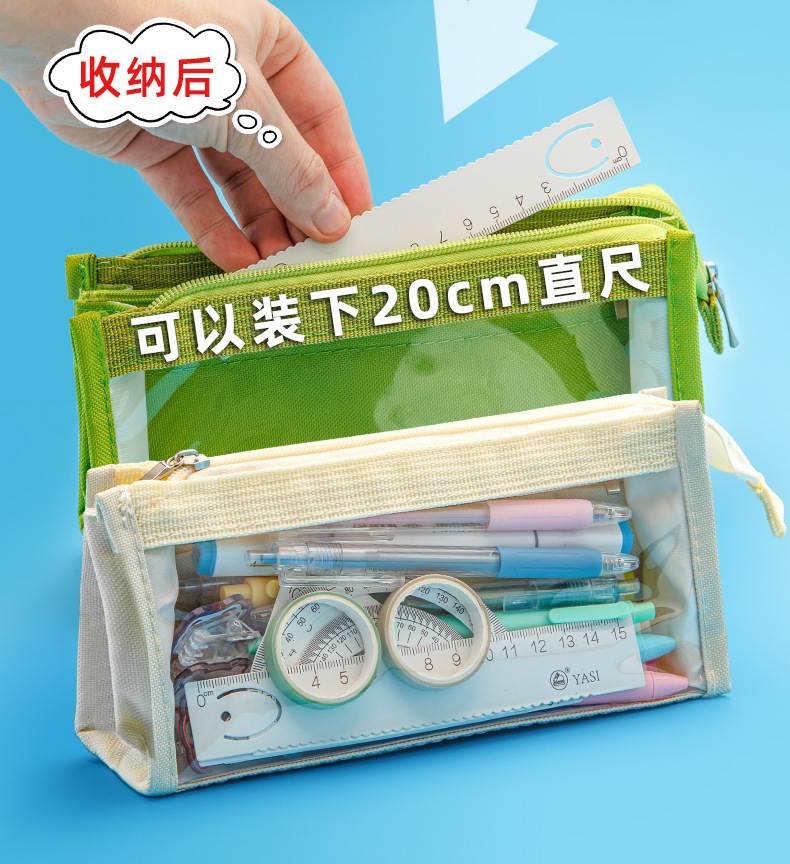 筆袋高颜値大容量透明ins女の子ネット赤文房具箱学生文房具袋小学生鉛筆箱