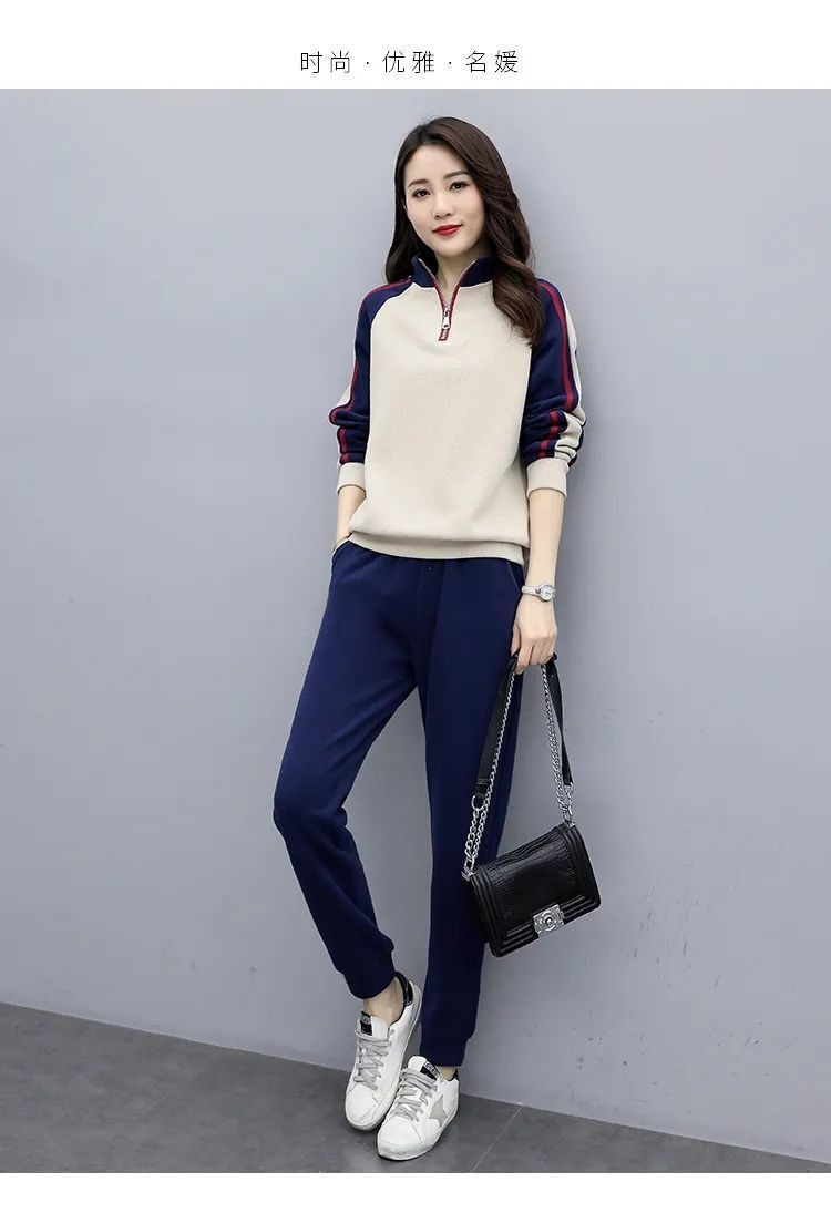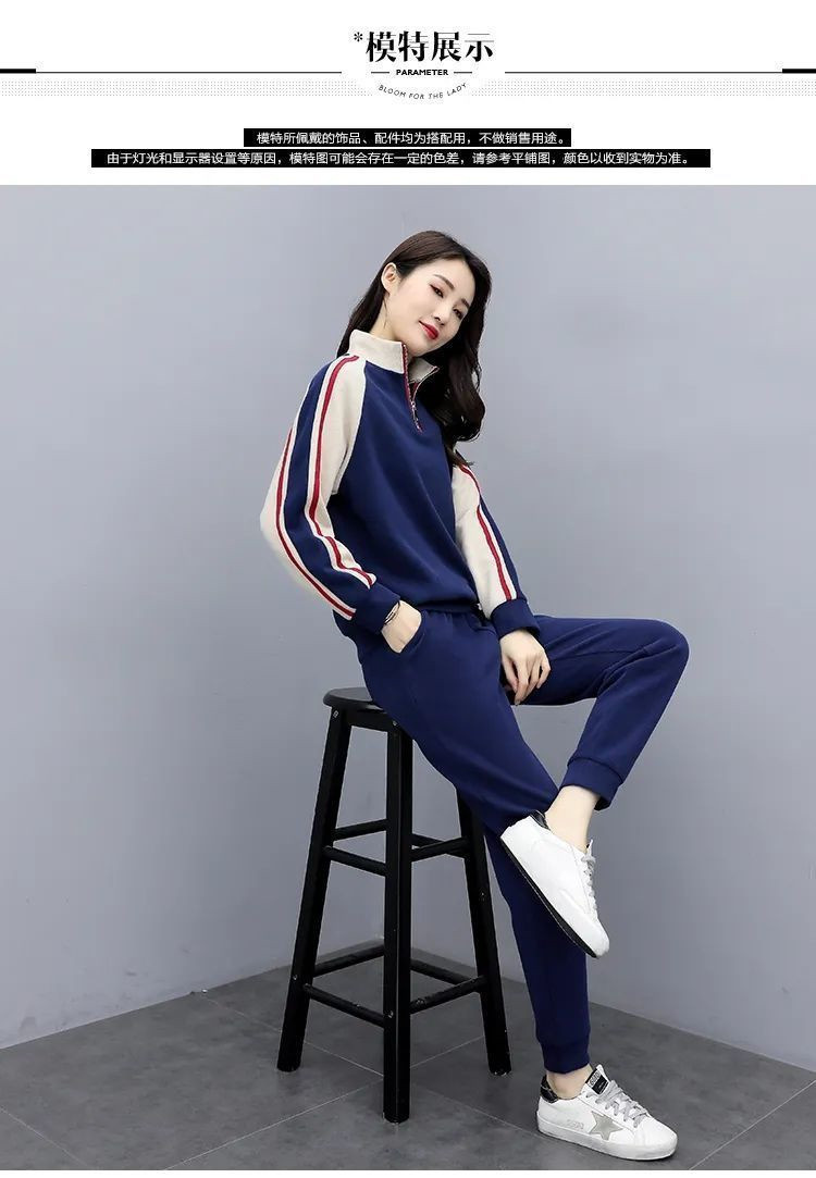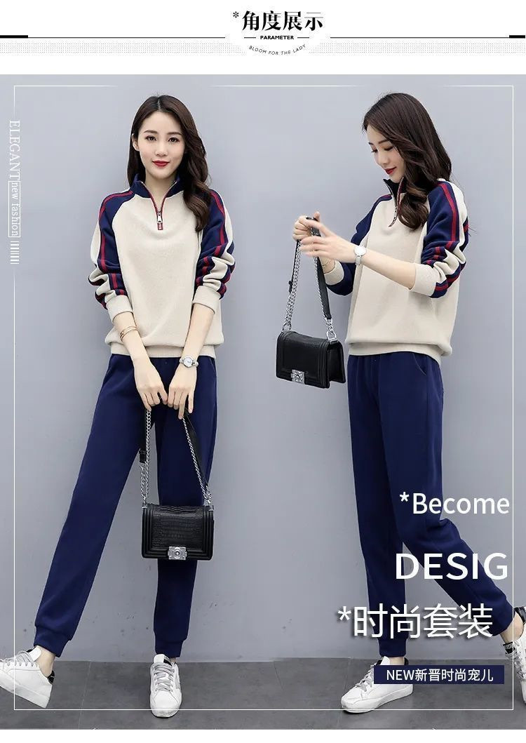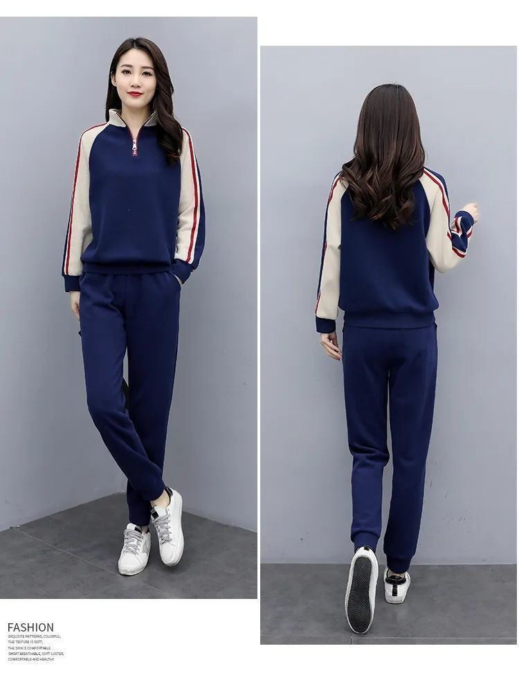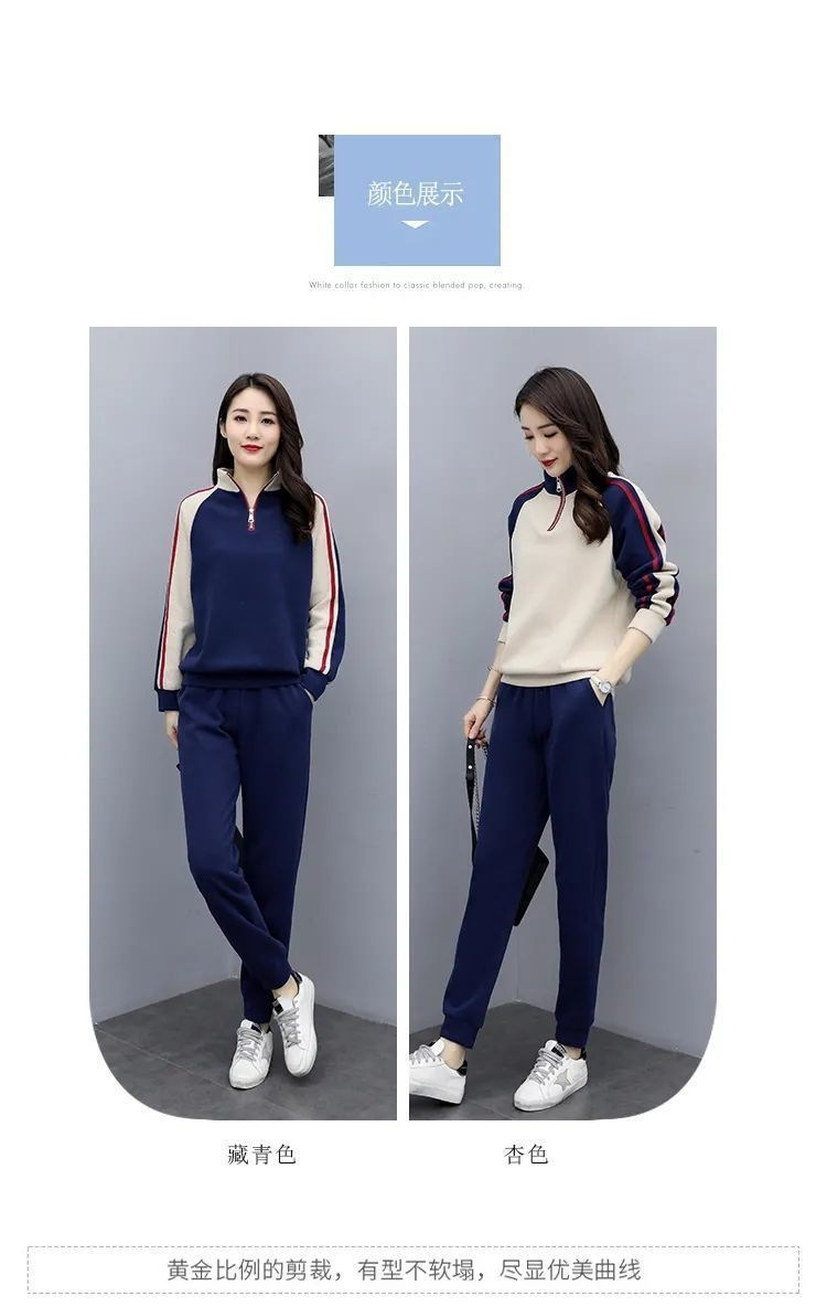 秋冬保温スーツカジュアルファッションスポーツウェアゆるい立襟スウェットパンツ2点セット女装ベルベット厚手