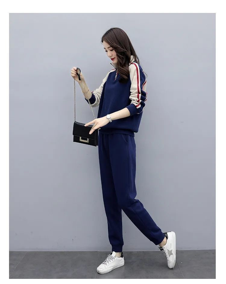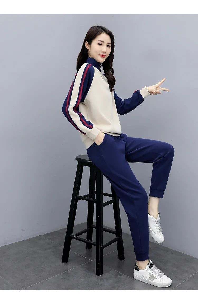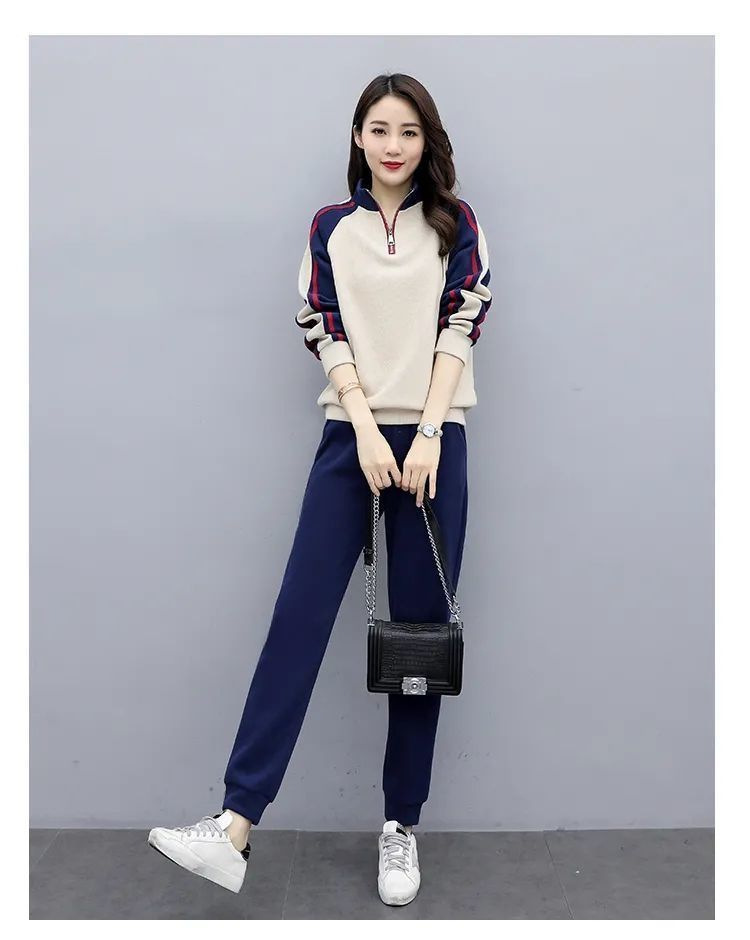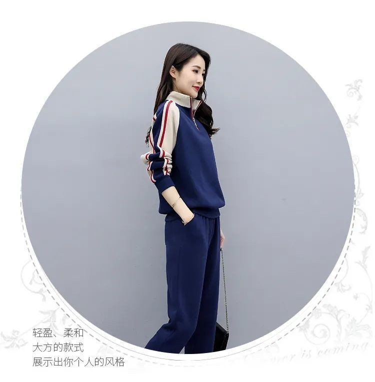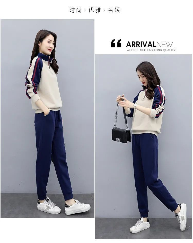 秋冬保温スーツカジュアルファッションスポーツウェアゆるい立襟スウェットパンツ2点セット女装ベルベット厚手