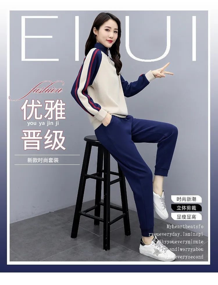 秋冬のベルベットはゆったりとしたカジュアルなスポーツスーツを厚くして、長袖のガードルのズボンを温めて、ファッションの婦人服を2セットにします。