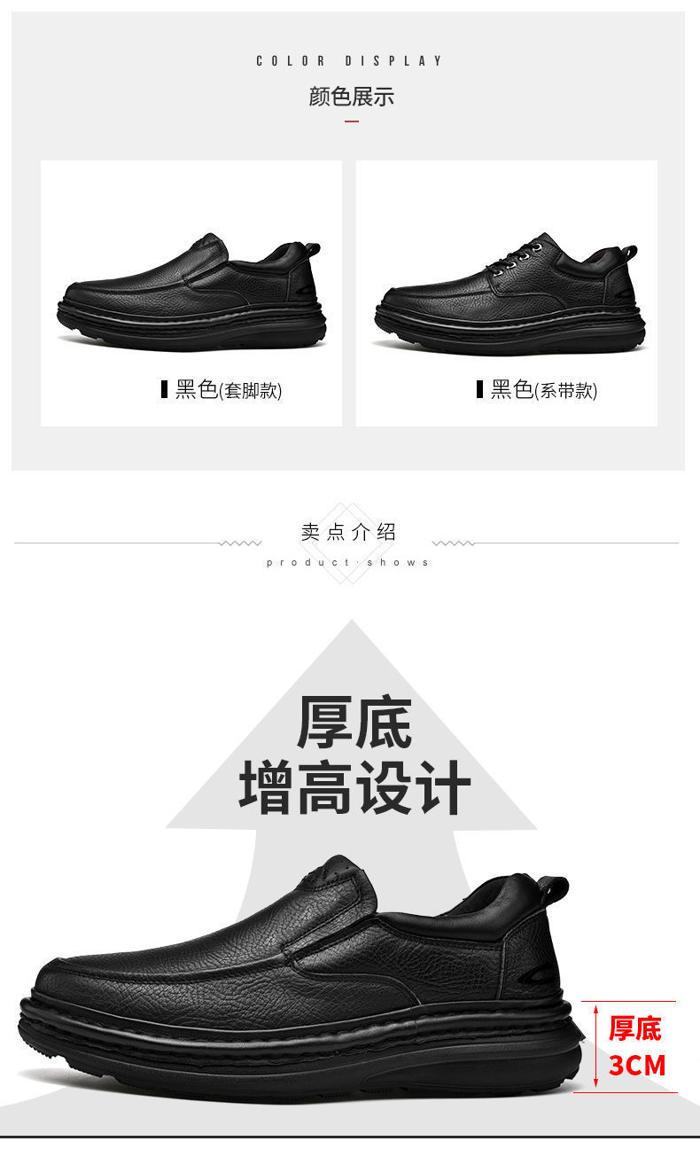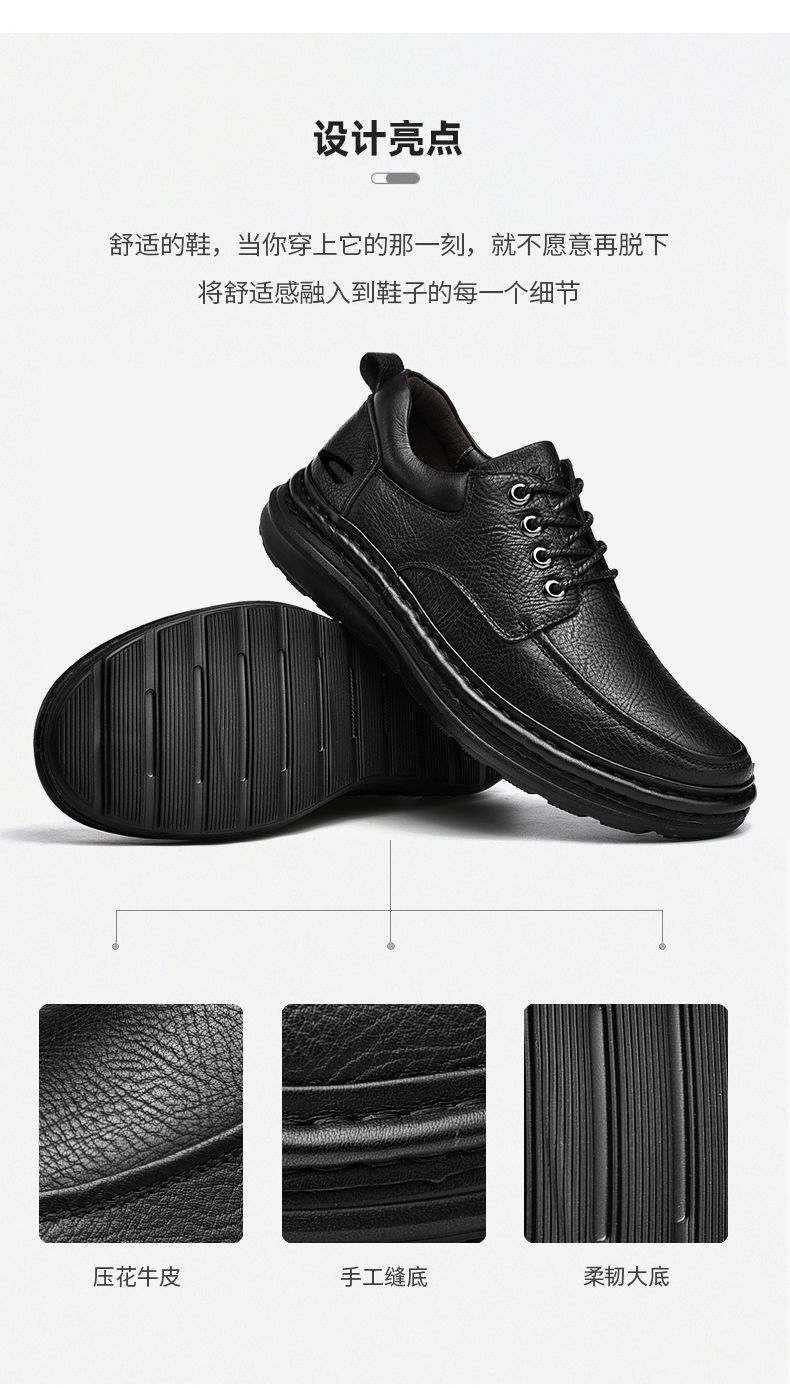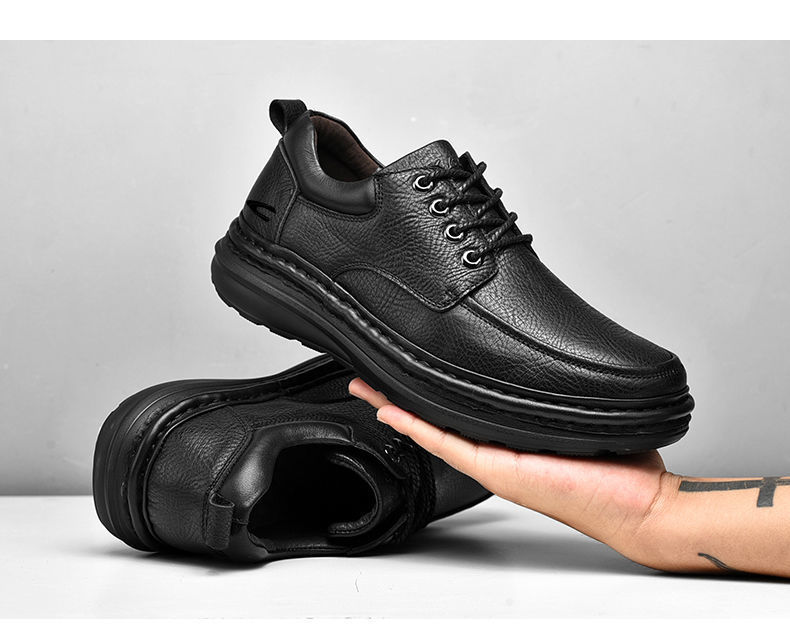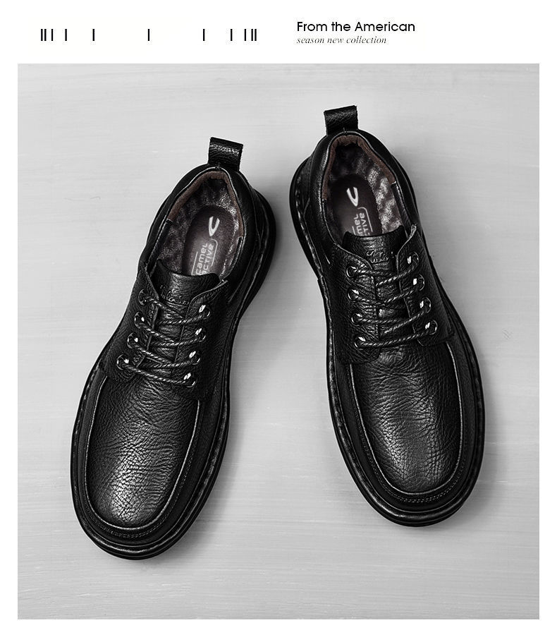 骆驼动感冬季头层牛皮休闲皮鞋男真皮厚底青年工装鞋男士大头男鞋