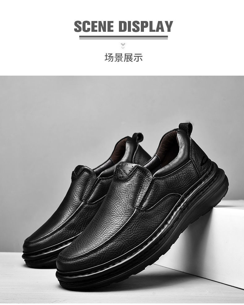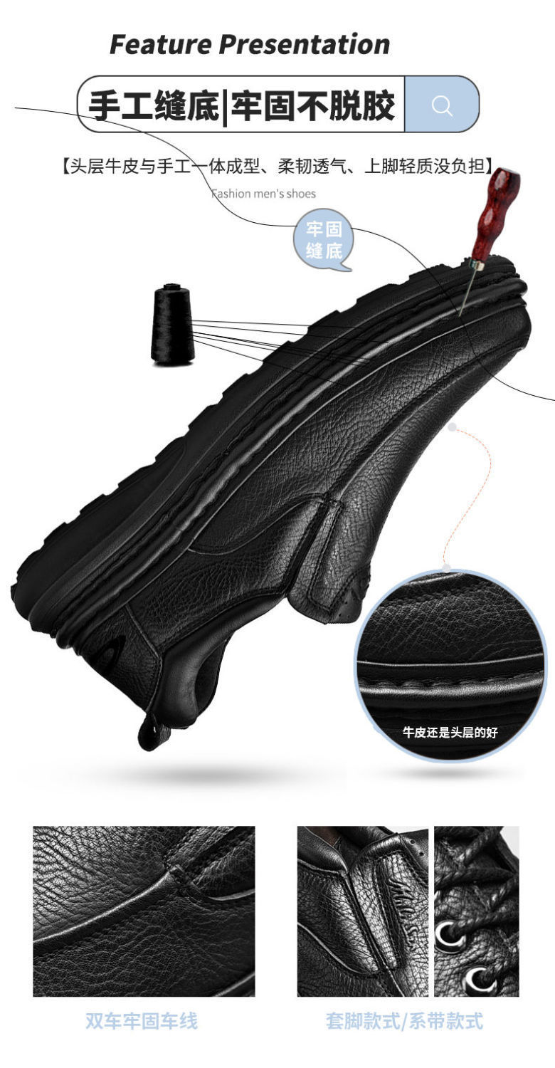 木林森男靴春の新型真皮通気性父の柔らかい底の柔らかい皮の正装ビジネスカジュアル靴男黒