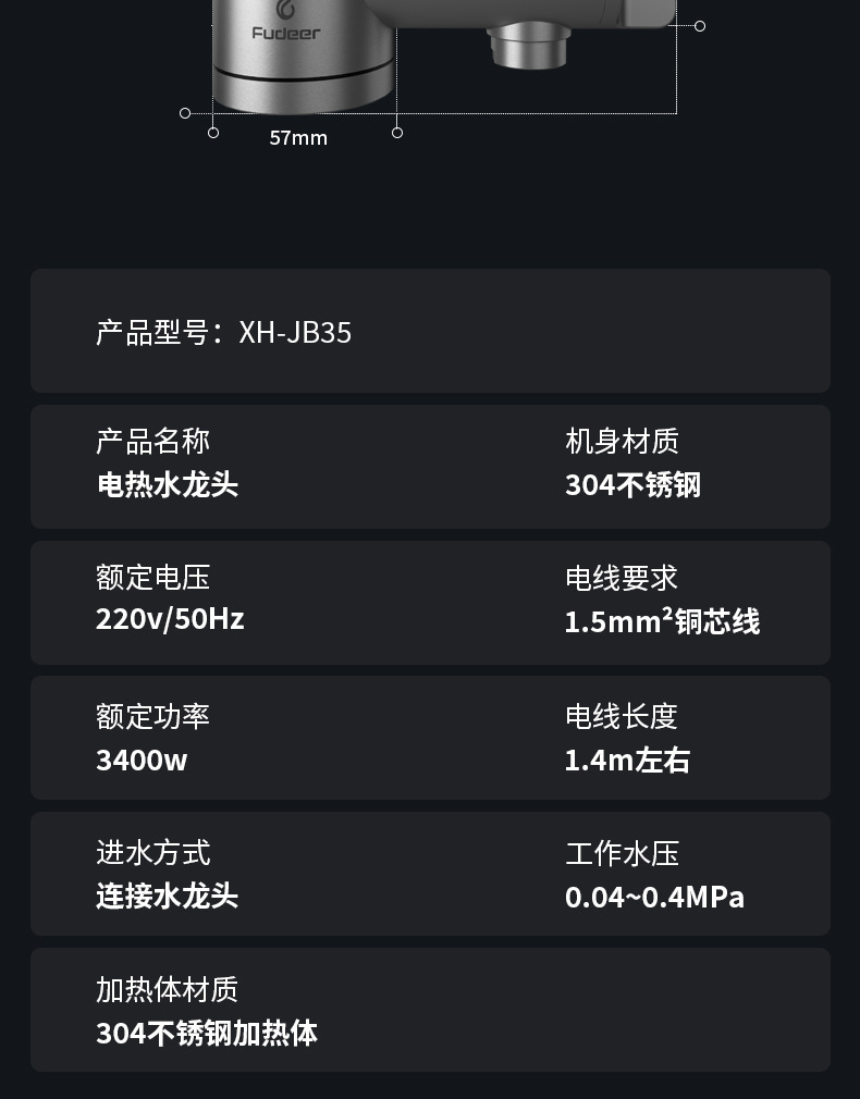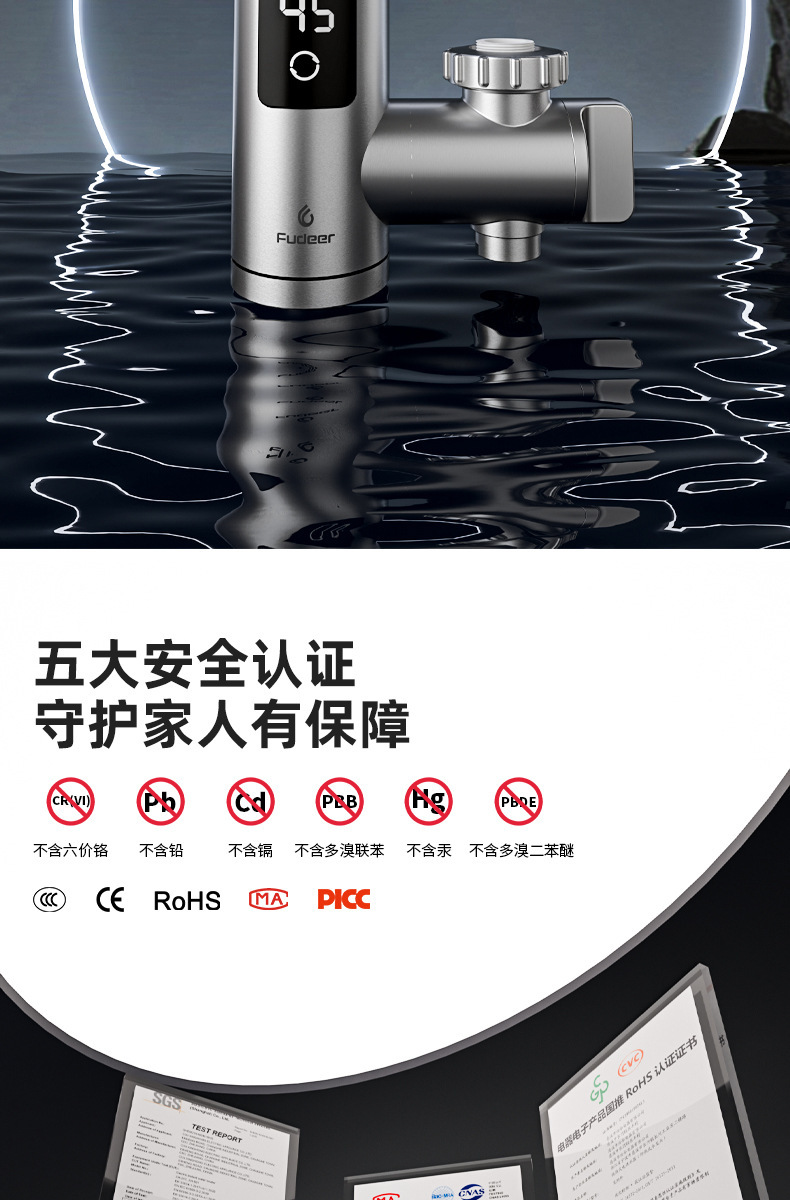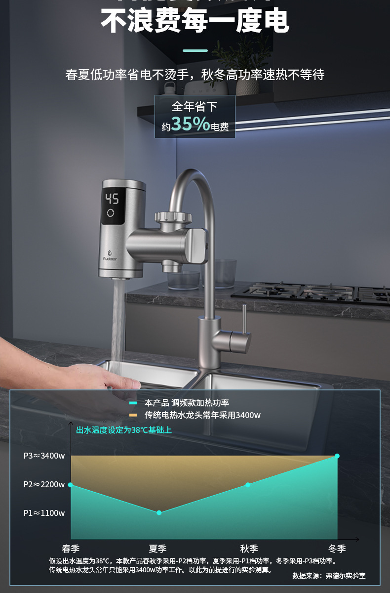 弗德尔接驳式电热水龙头加热器即热式厨房家用速热热水器免安装