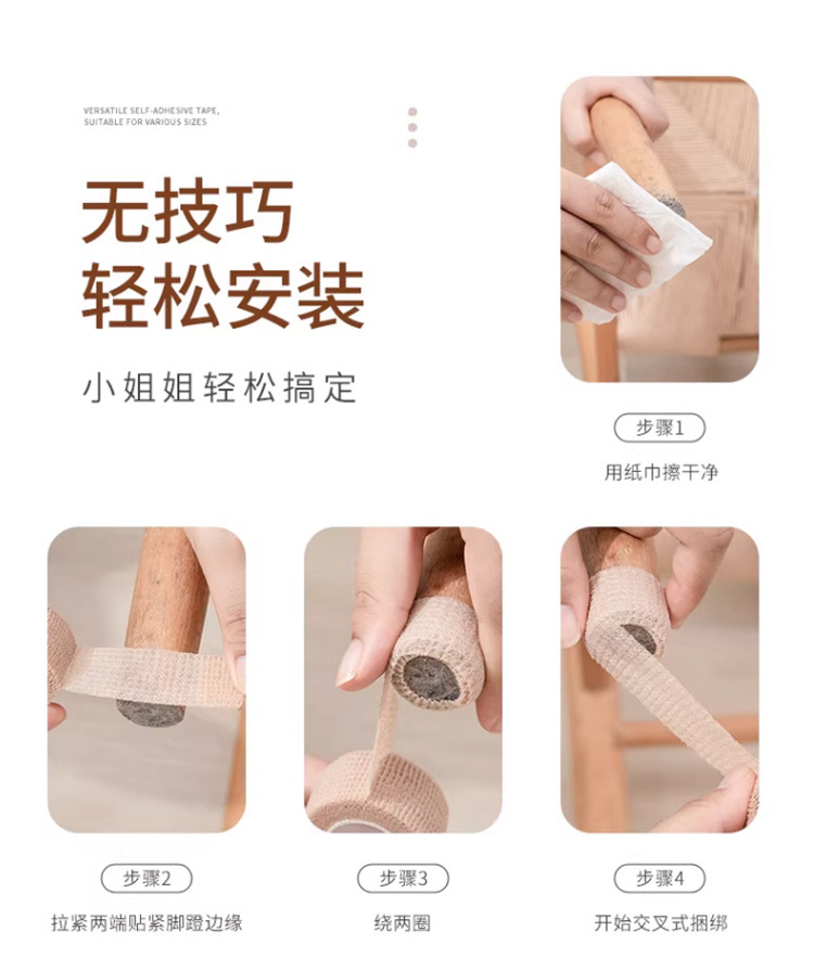 椅脚套静音耐磨通用桌椅脚套多功能自粘缠绕绑带凳子腿防滑保护套