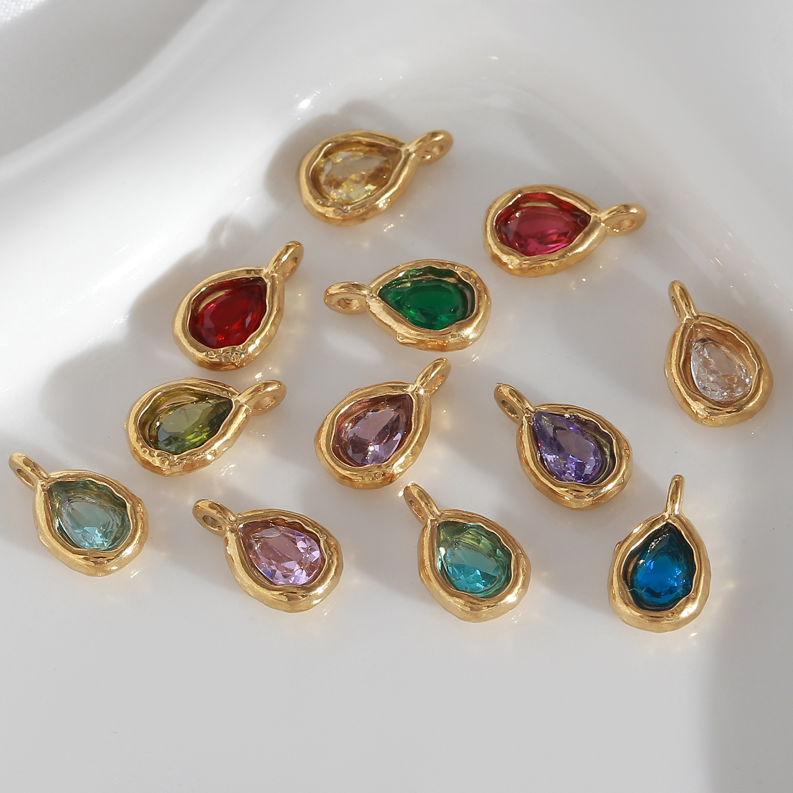 スポット DIY ジュエリー アクセサリー誕生石ウォータードロップ楕円形シングルペンダント誕生石ステンレス鋼 12 月誕生石ペンダント