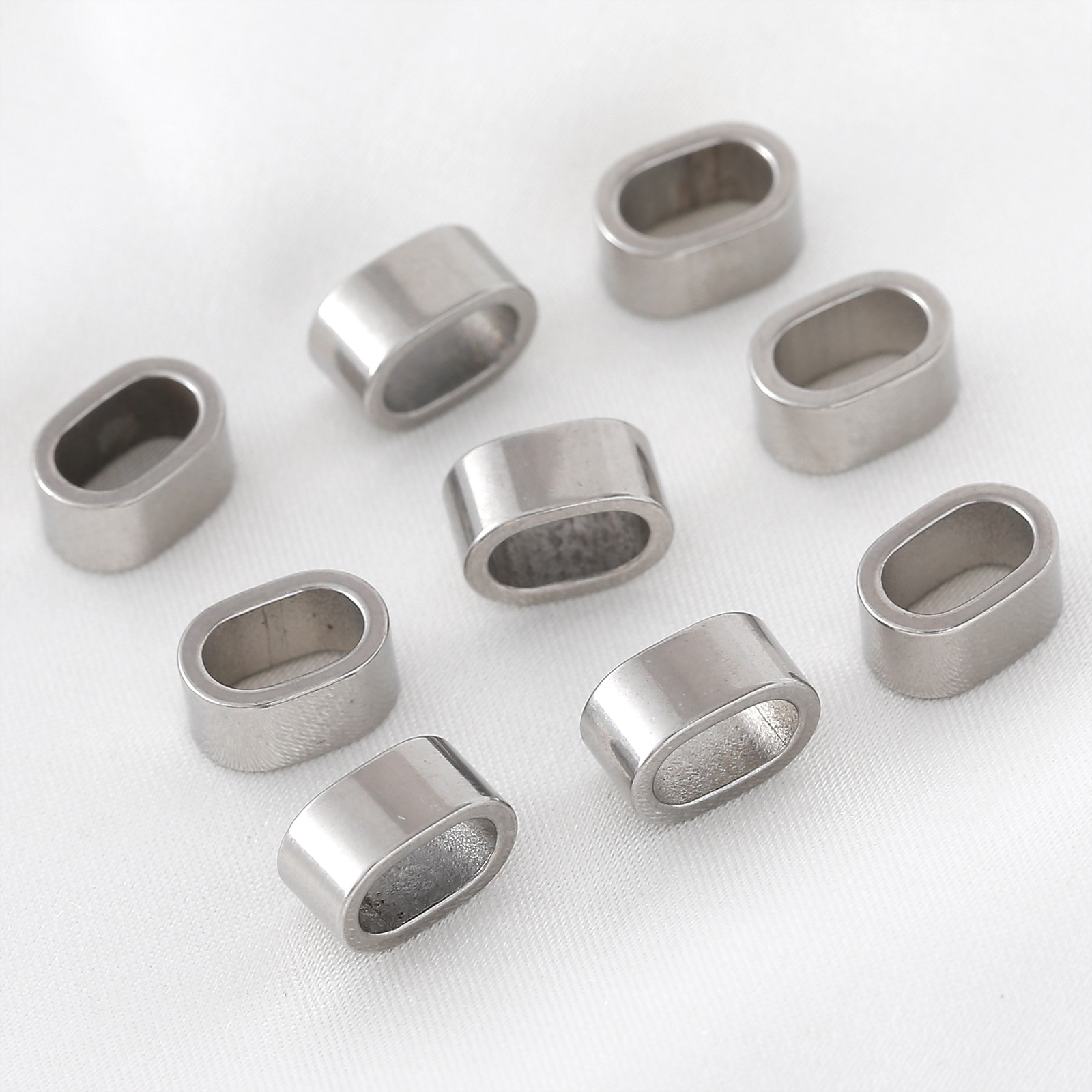 DIY皮绳配件批发不锈钢保色无缝定位圈手链定位椭圆套管大孔隔珠