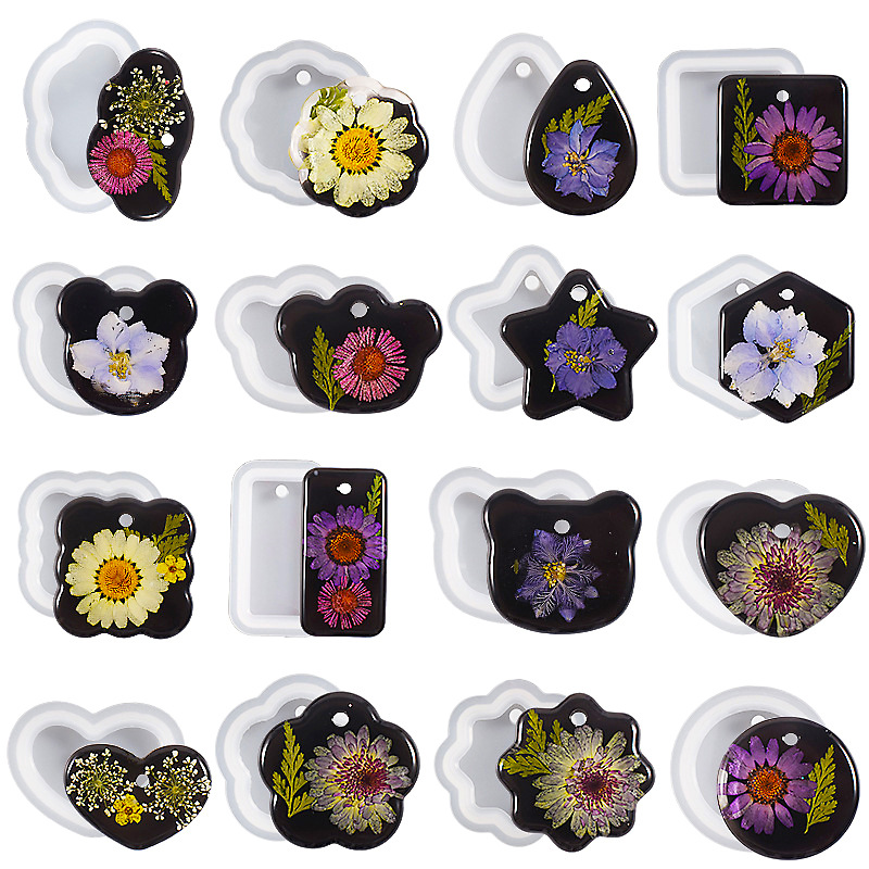 水晶滴ゴムdiy単一ペンダント金型研磨不要幾何学花雲ペンダントキーホルダーシリコン金型