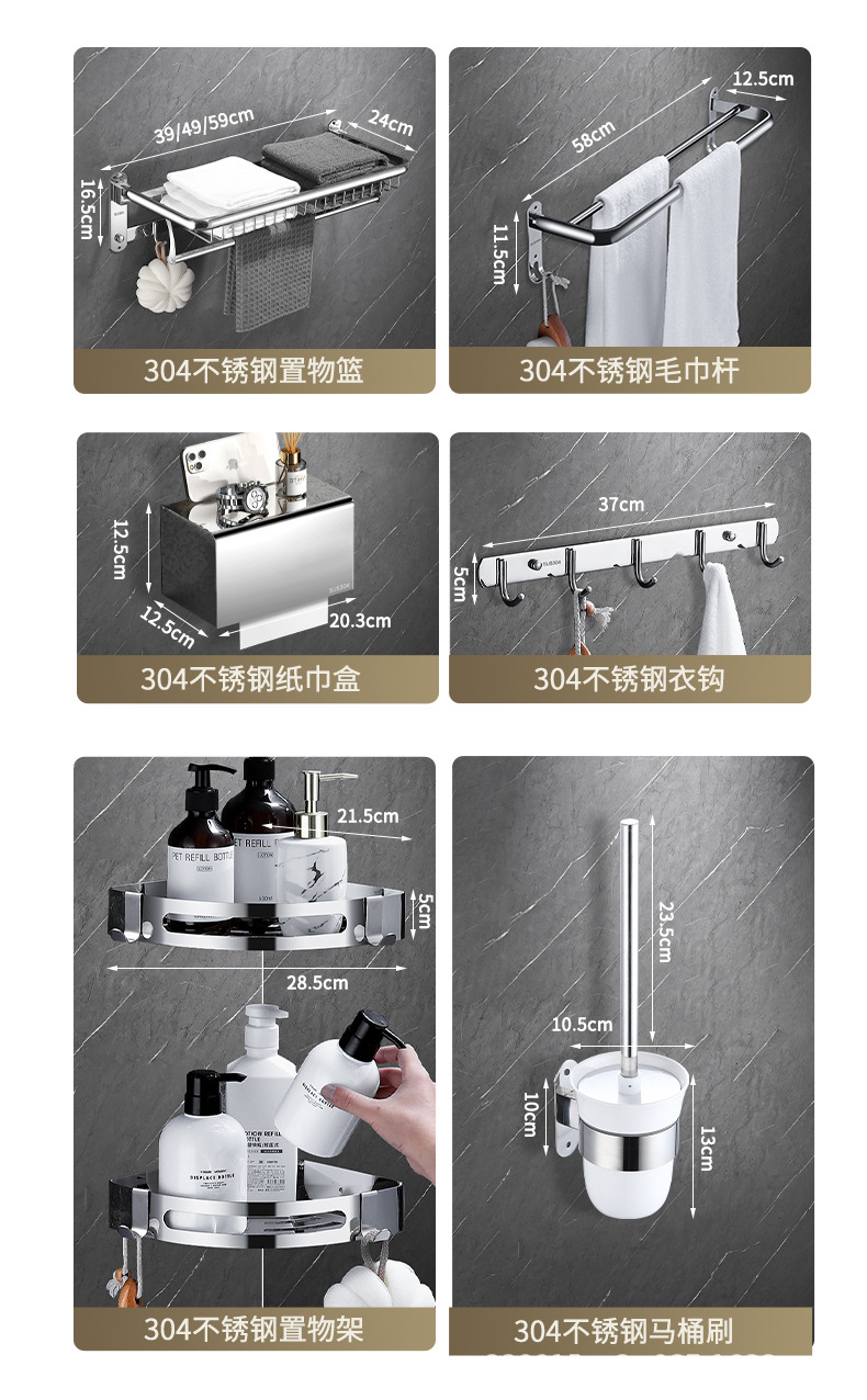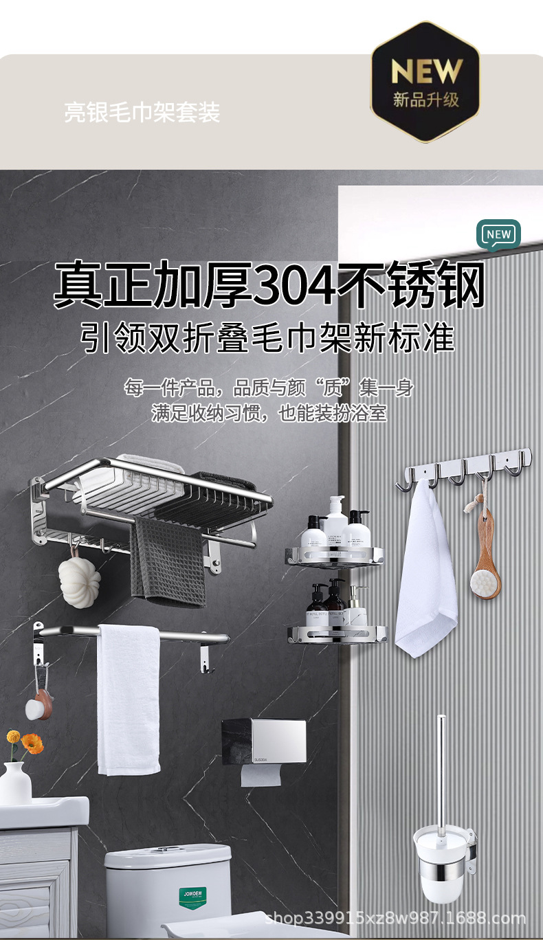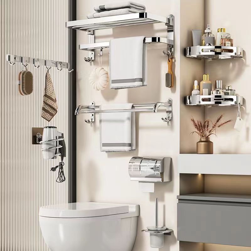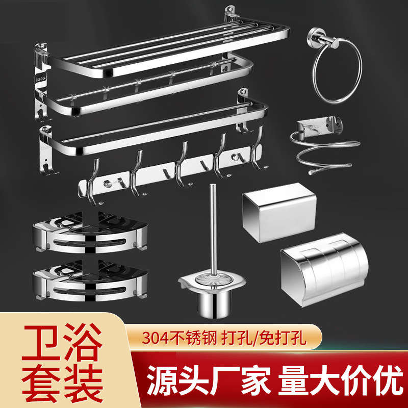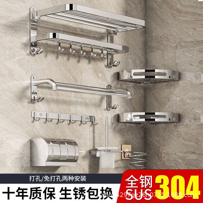 304ステンレス製トイレ収納ラック、穴あけ不要タオル掛け、壁掛け浴室タオル掛け、バスルームアクセサリーセット