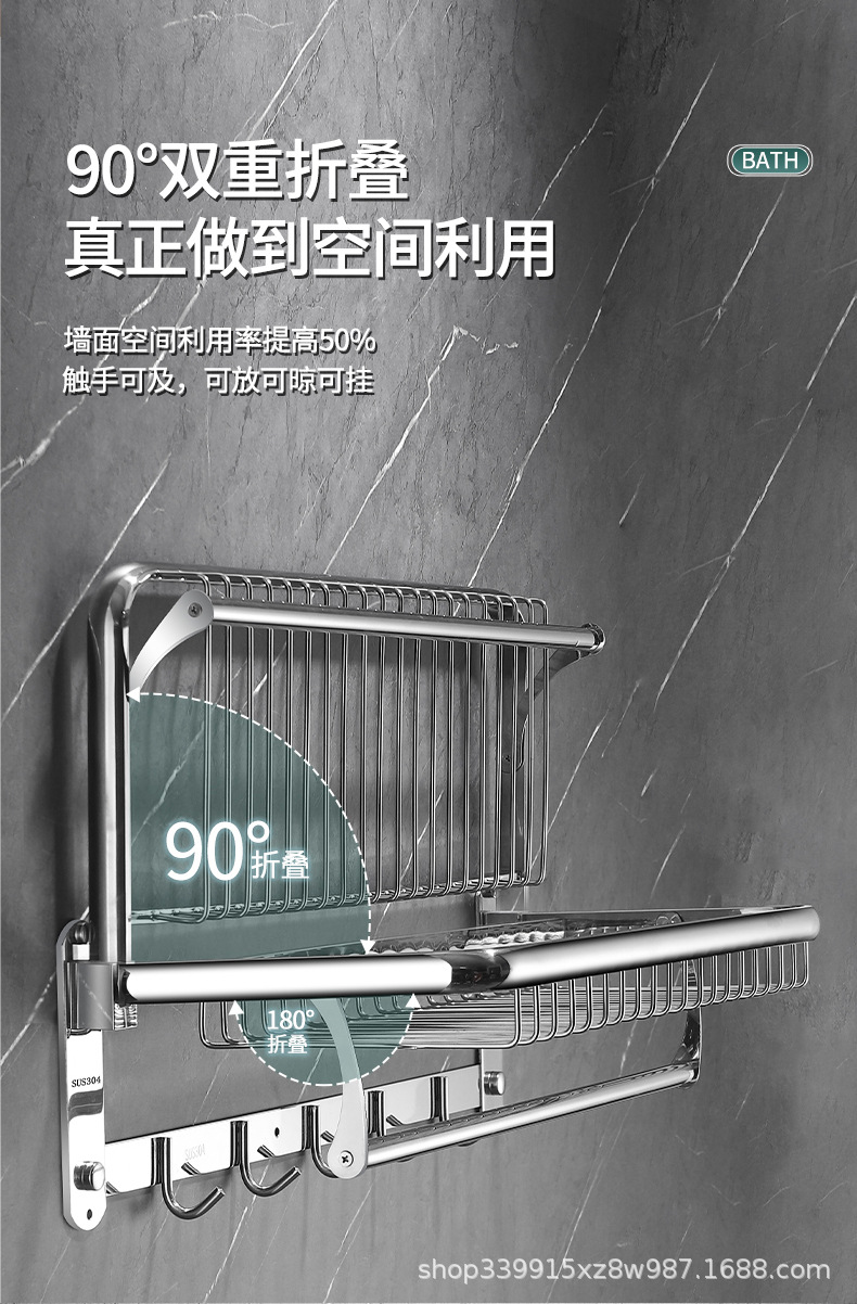 トイレタオルラック304ステンレス浴室ネットバスケットセット物置ラック壁掛け服収納ラック折り畳みラック