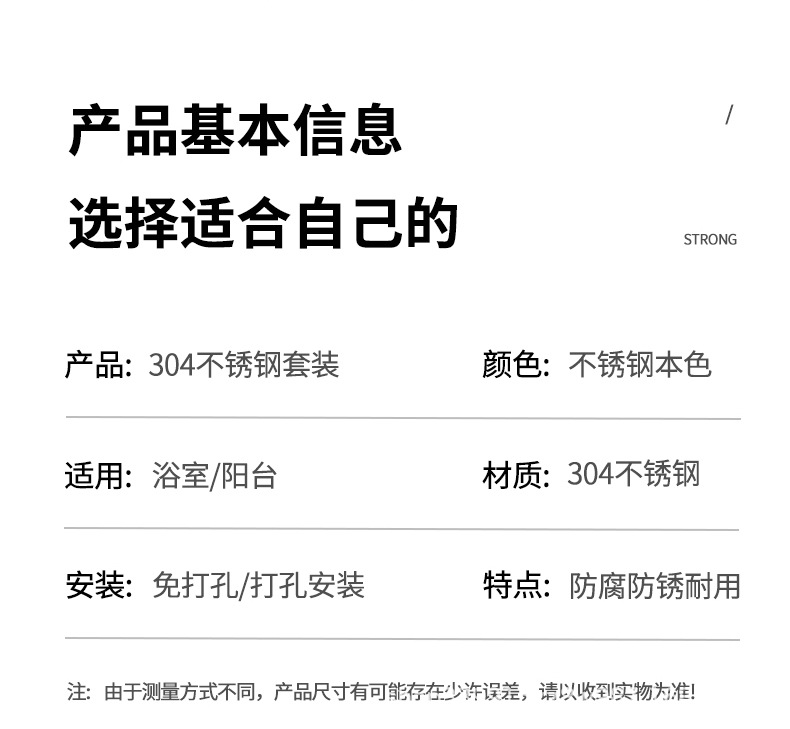 タオル掛けステンレス304浴室棚セットトイレ穴なしストラップバスタオルラック5点セット