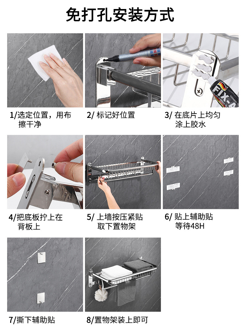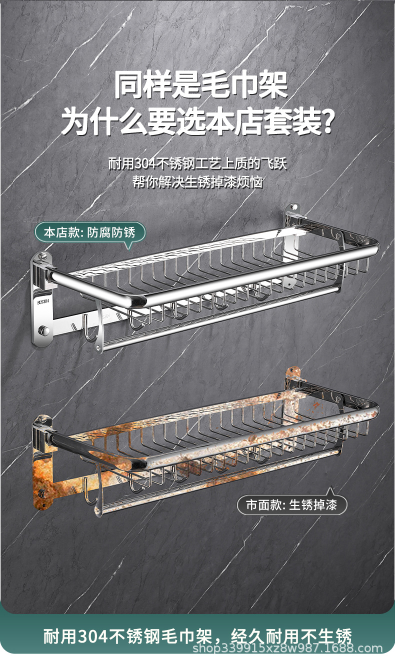304ステンレス浴室棚トイレ穴なし壁掛け収納棚タオル掛けトイレ