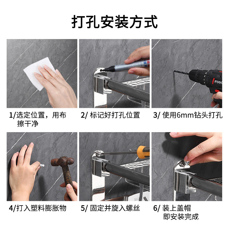 304ステンレス浴室棚トイレ二重三段置き棚収納棚タオル掛けトイレ穴なし