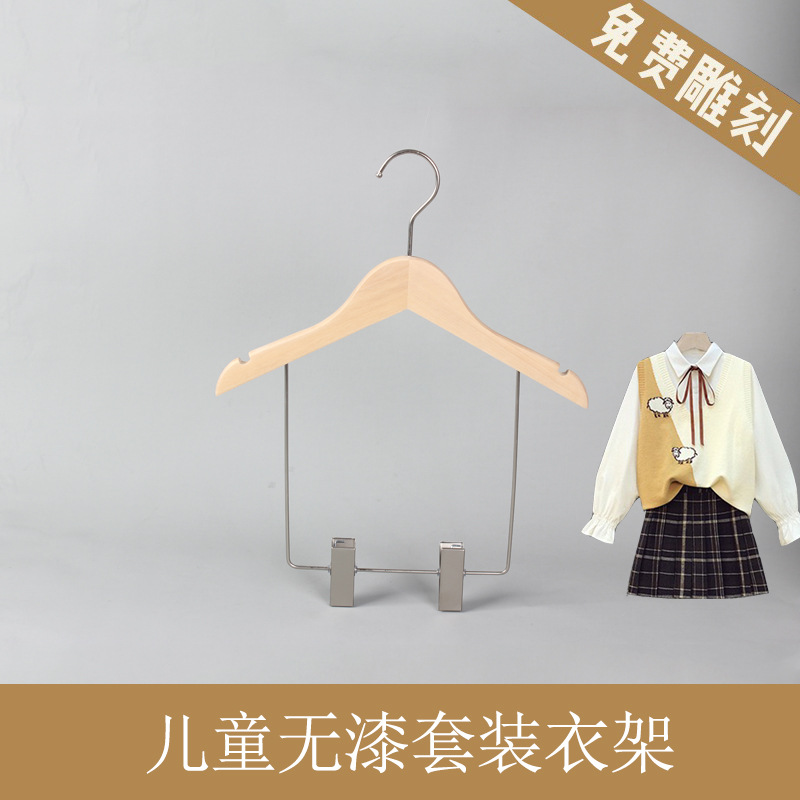 原木色の無漆子供セットの実木ハンガーの赤ちゃんのワンピースは一体型の子供服の店の服を掛けて卸売りを支えます。