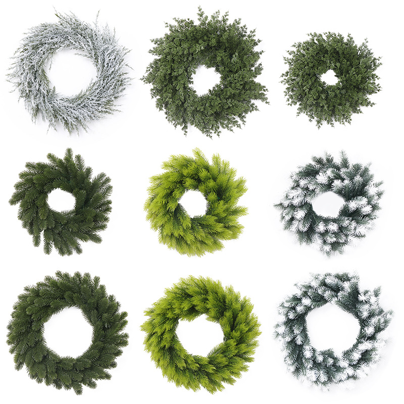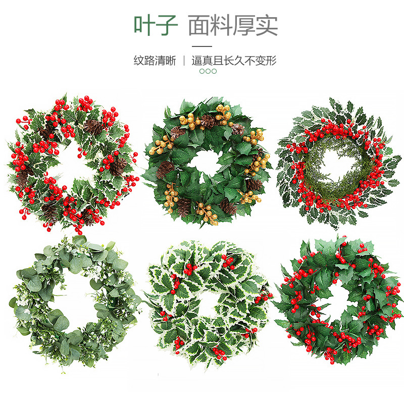 国境を越えたクリスマスの花輪ショーウインドーのドア飾り人工松針藤条緑の雰囲気にクリスマスの花輪を配置する