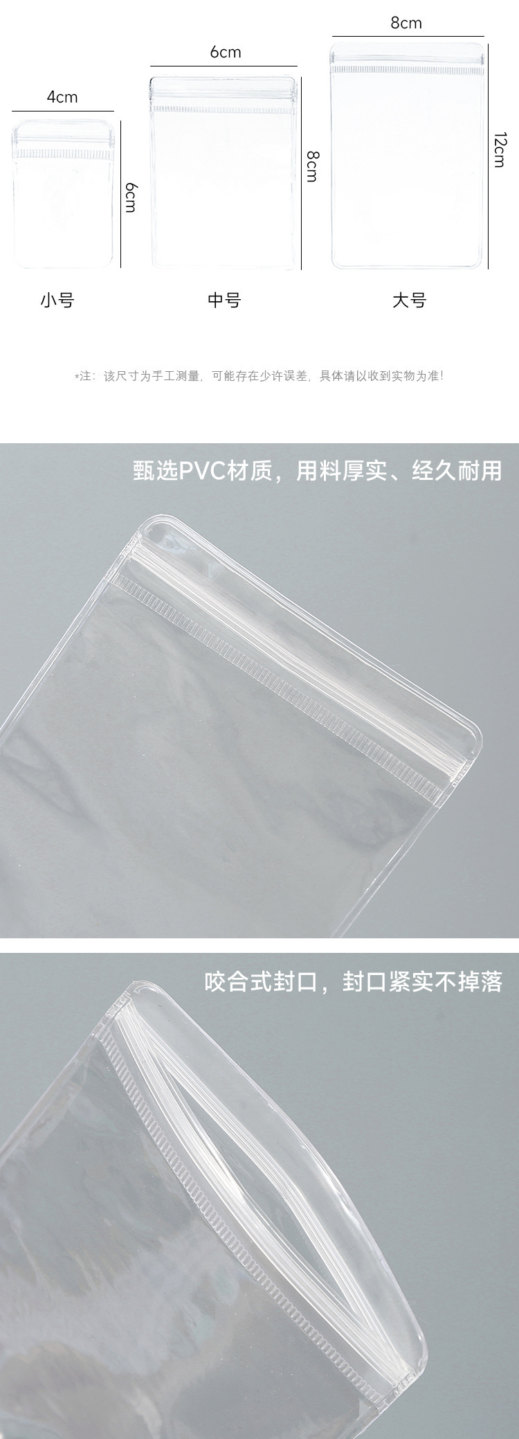 Pvc透明ジュエリー収納袋高級厚手自封口アクセサリーイヤリング収納密封袋酸化防止
