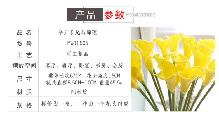 马蹄莲仿真花pu手感家居酒店餐桌花束装饰婚庆插花拍照道具假花