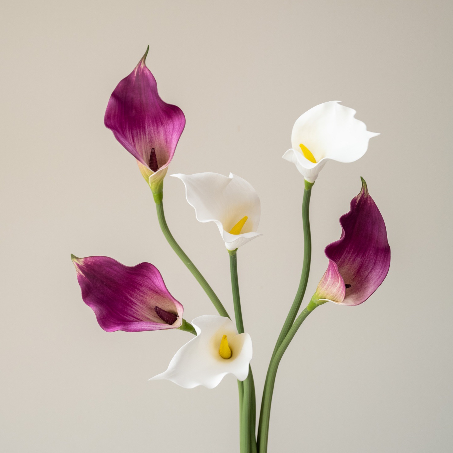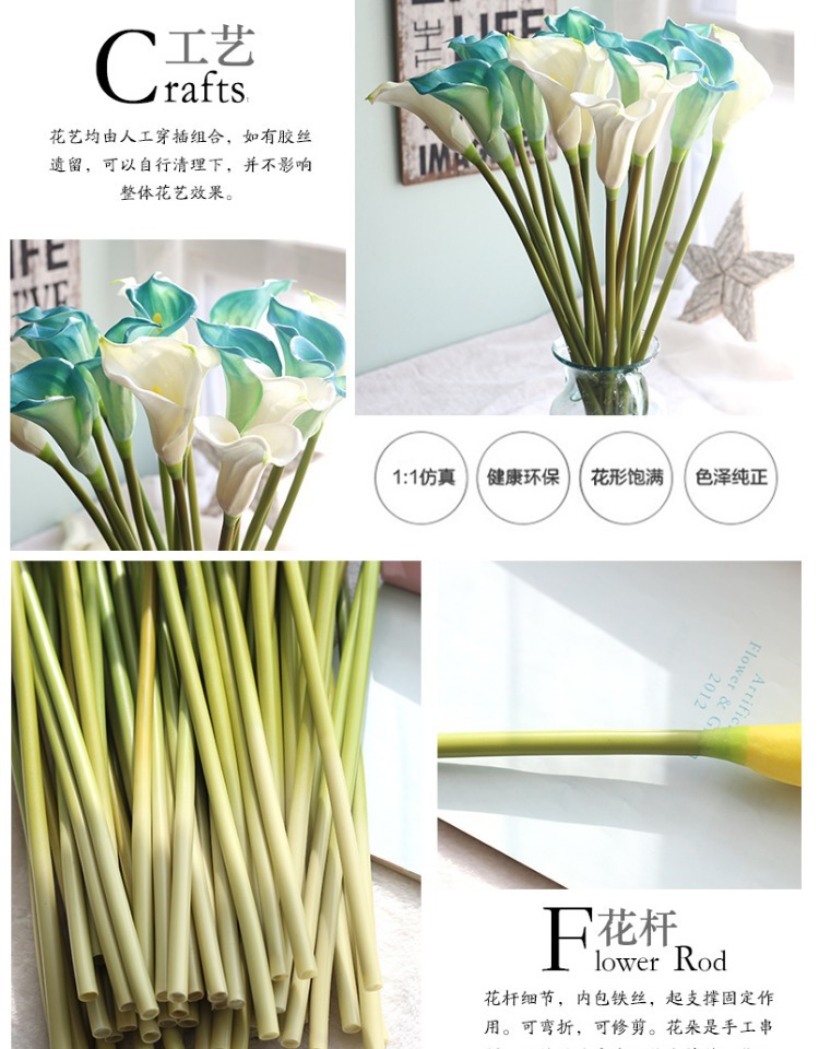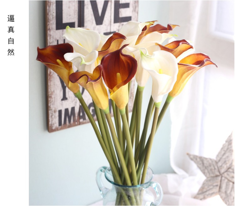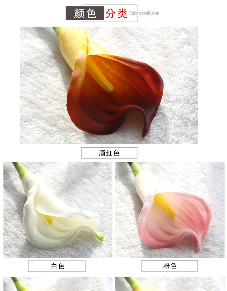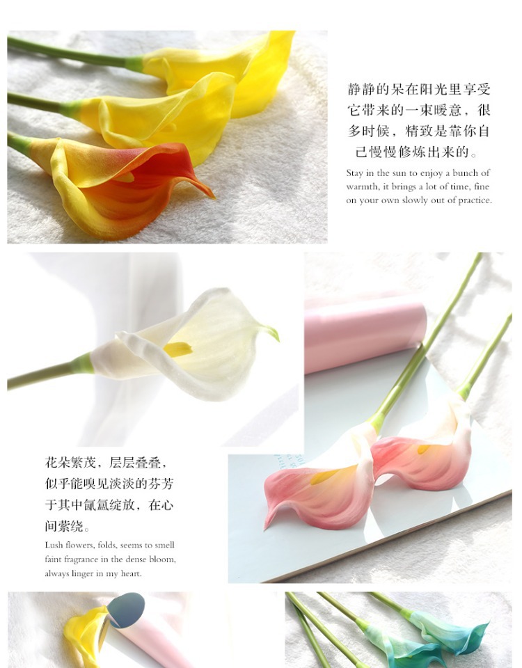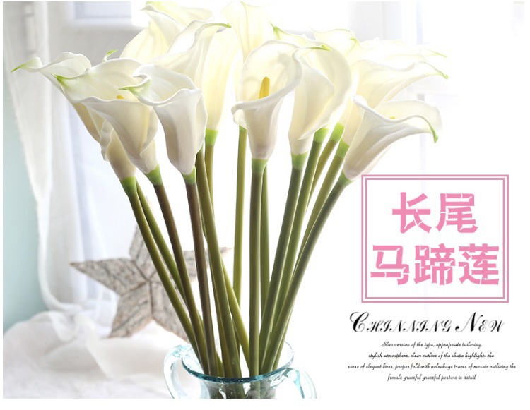 高品質トランペットオランダカイウユリ、オランダカイウユリ、フェイクフラワー、アートデザイン、フラワーアレンジメント、装飾用シングルペアリング素材