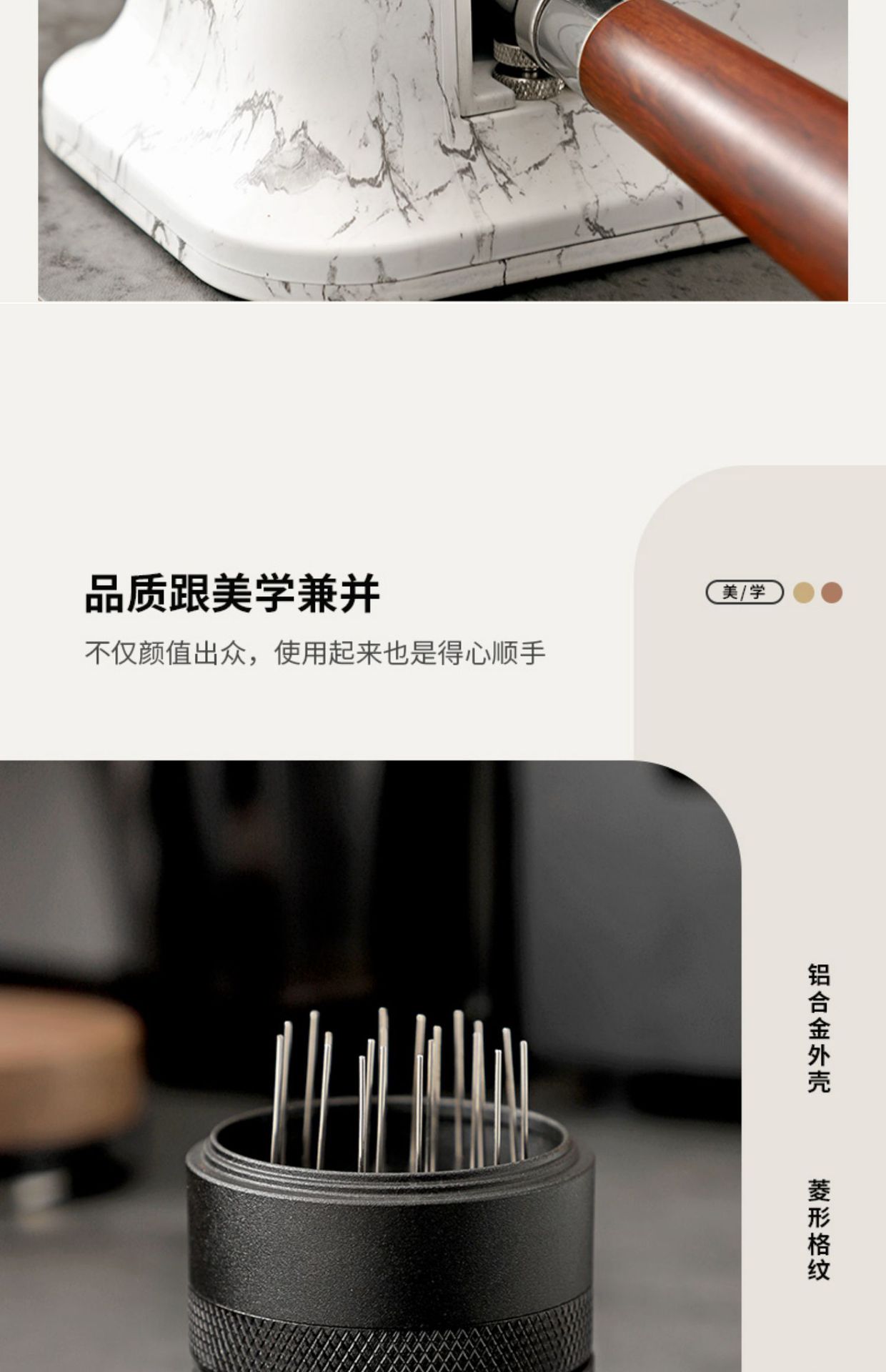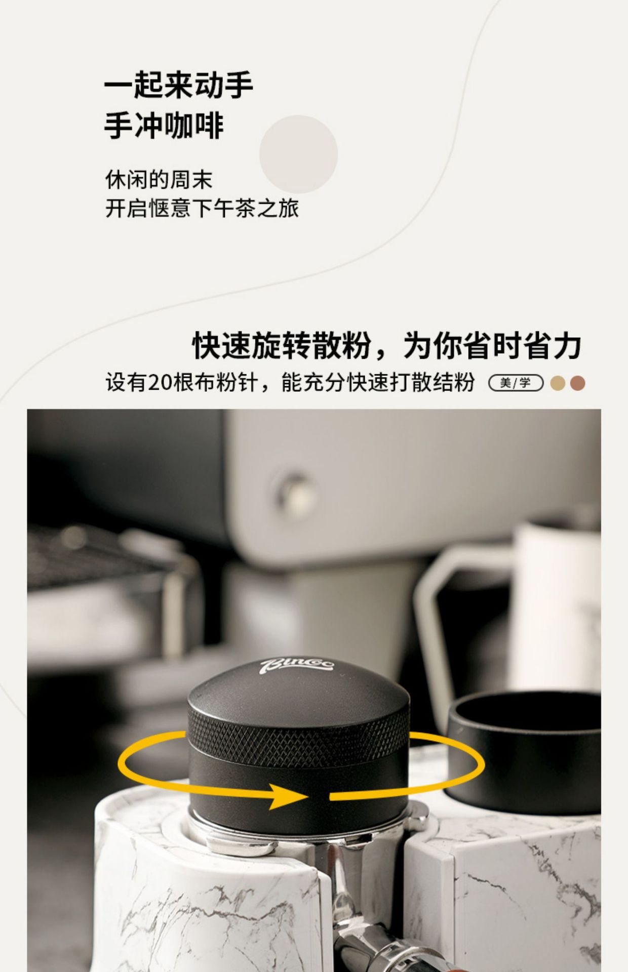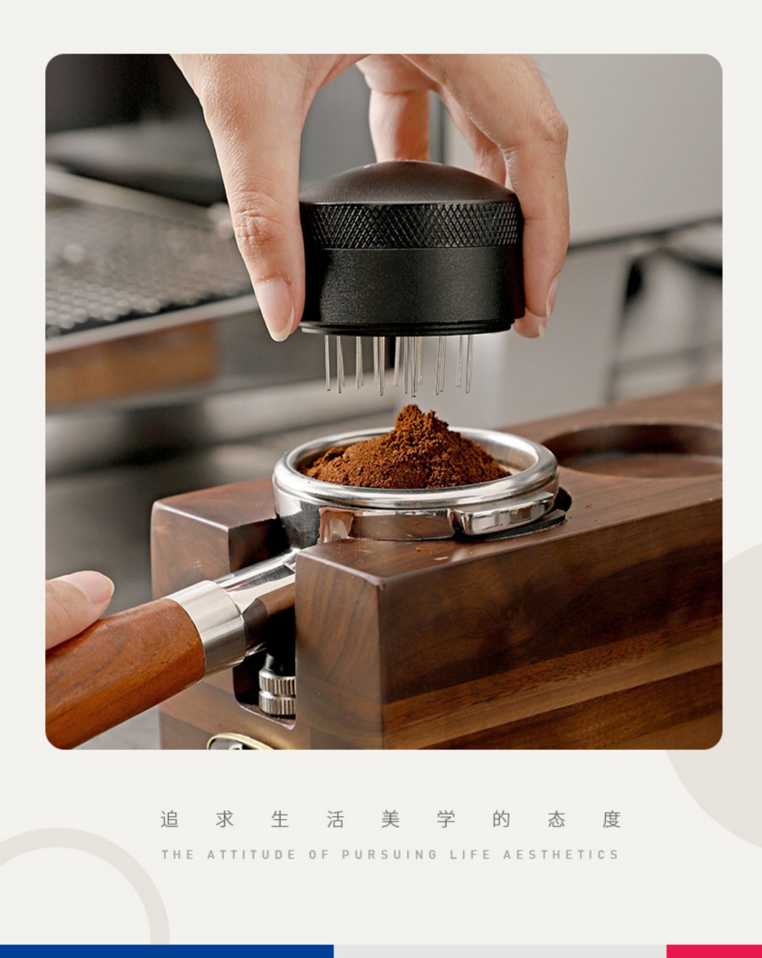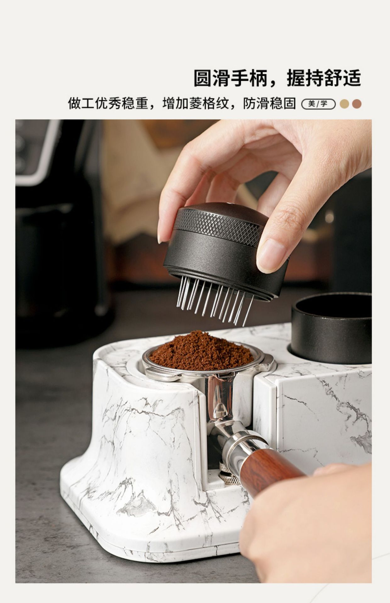 Bincoo木目式多機能ベースコーヒー叩きかす布パウダーパウダー収納セット51/58mm汎用