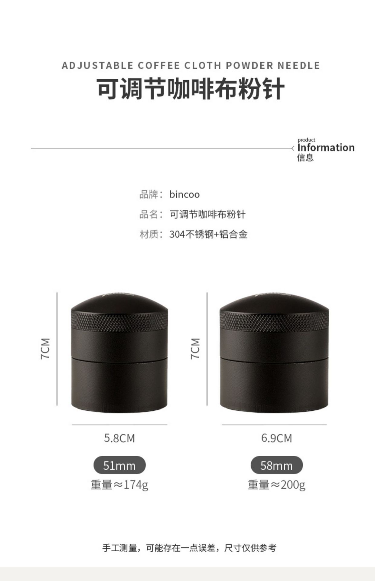 Bincooエスプレッソハンドルマグネット付パウダーリングコーヒーメーカー51/53/58mmステンレス鋼パウダーカッター