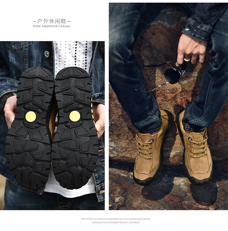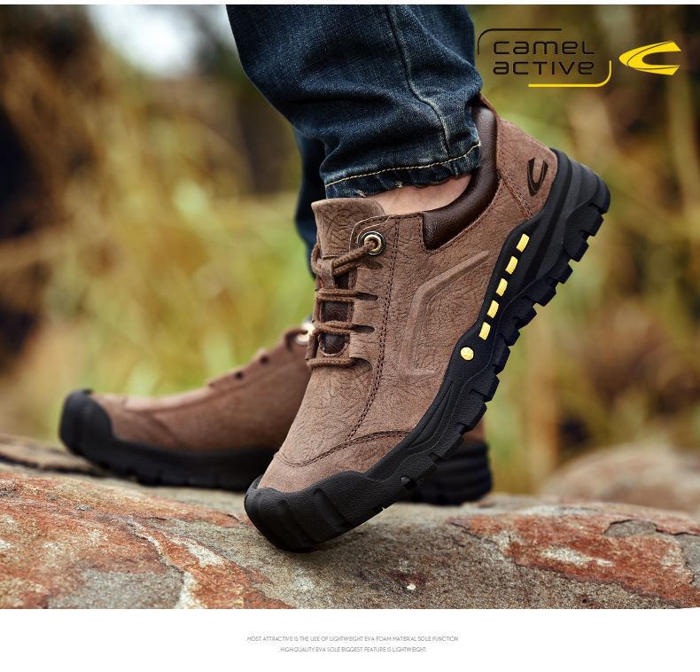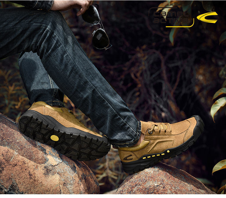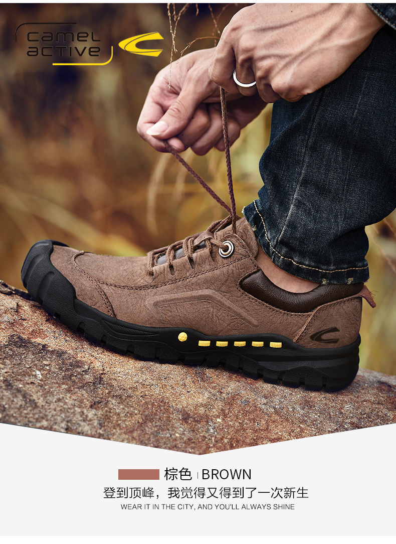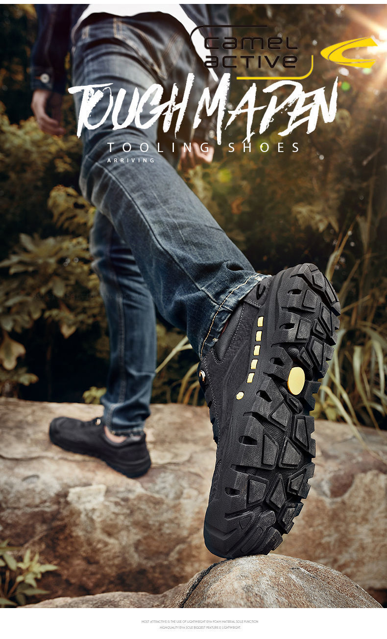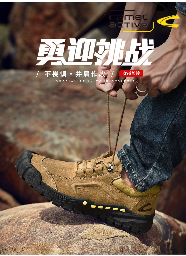 ドイツのラクダのダイナミックな男性靴2023春の新しい屋外カジュアルシューズ本革防水滑り止めソフト底工装靴