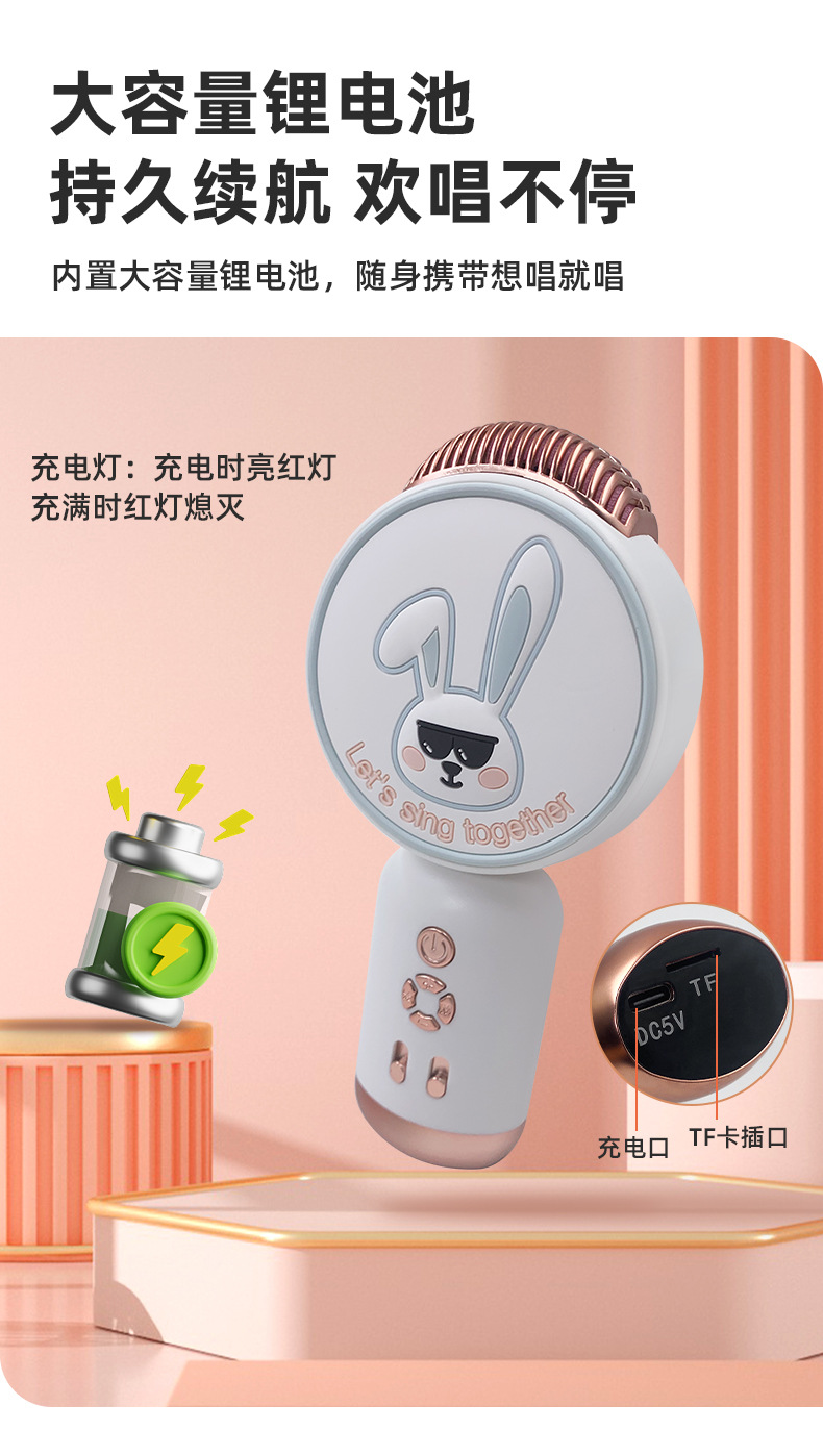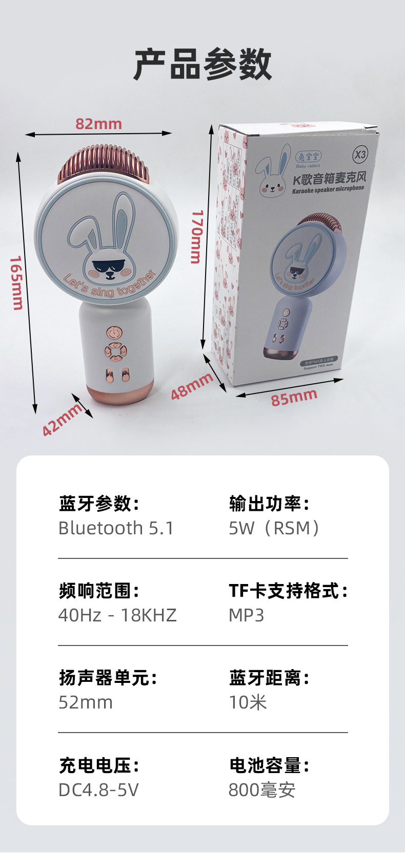 新型x6ウサギの赤ちゃんの子供の無線のbluetooth携帯電話のマイクの音響のマイクは一体の家庭のカラオケを放します。