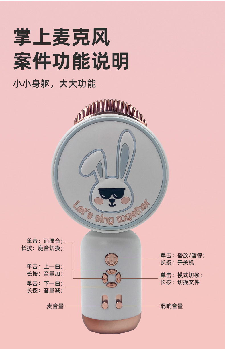 国境を越えた現貨販売 マイクとスピーカー一体型Bluetoothスピーカー 家庭用カラオケ スクエア漫画風可愛いペットマイク